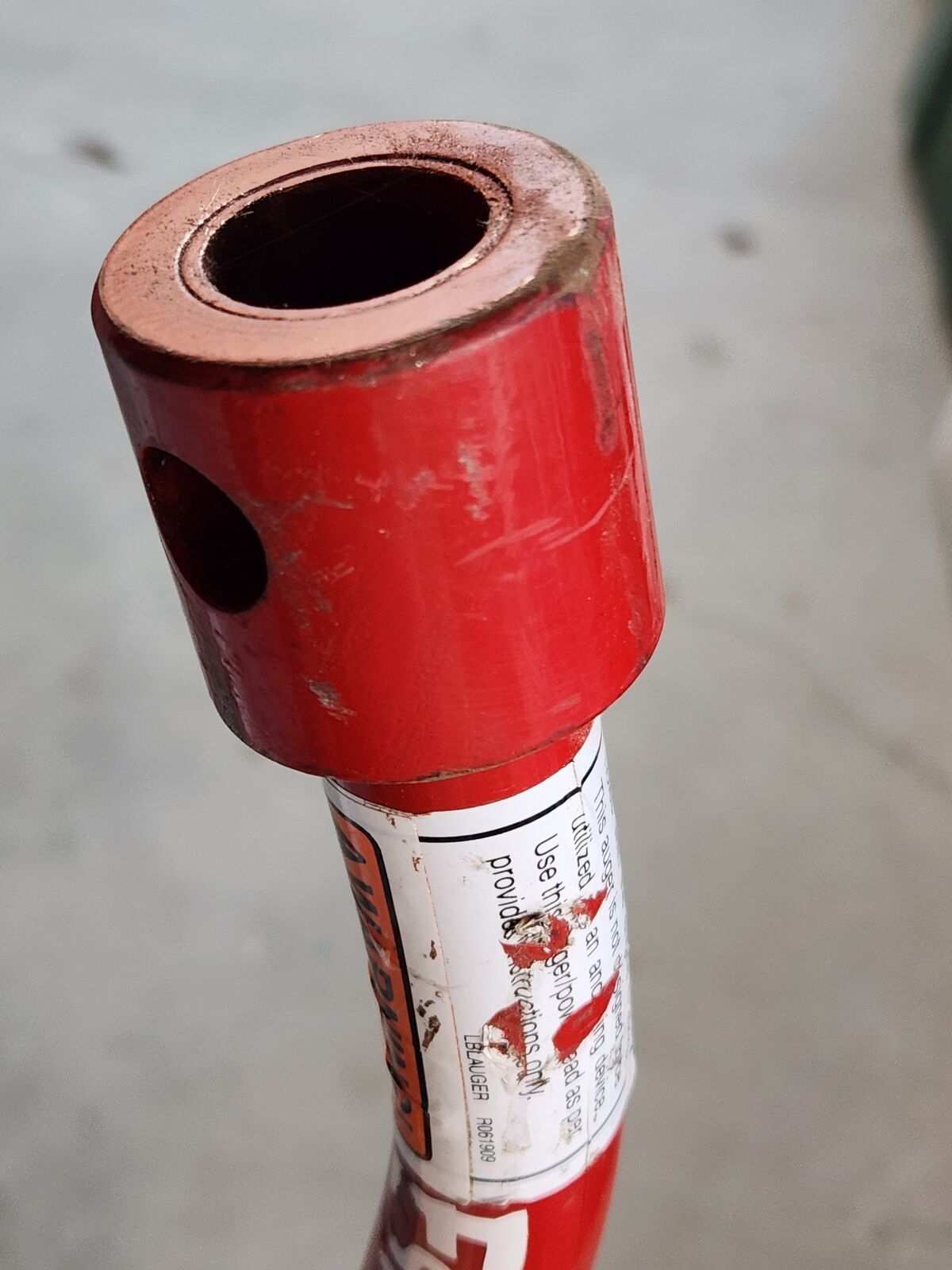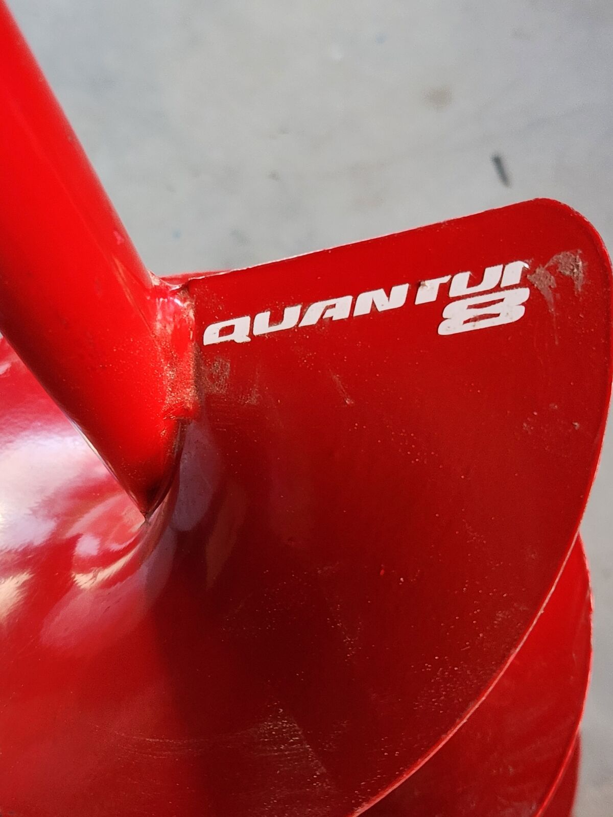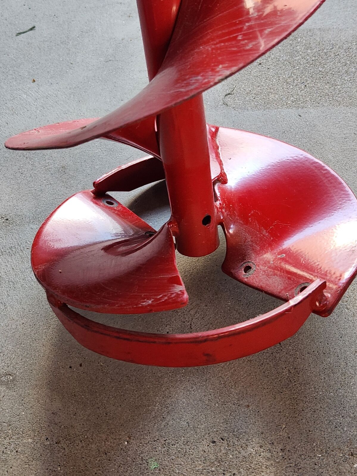 Ice fishing auger 8inch blade has bent center where auger connects.