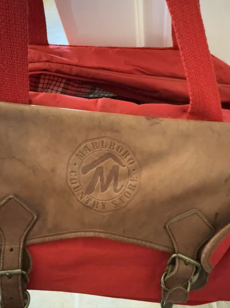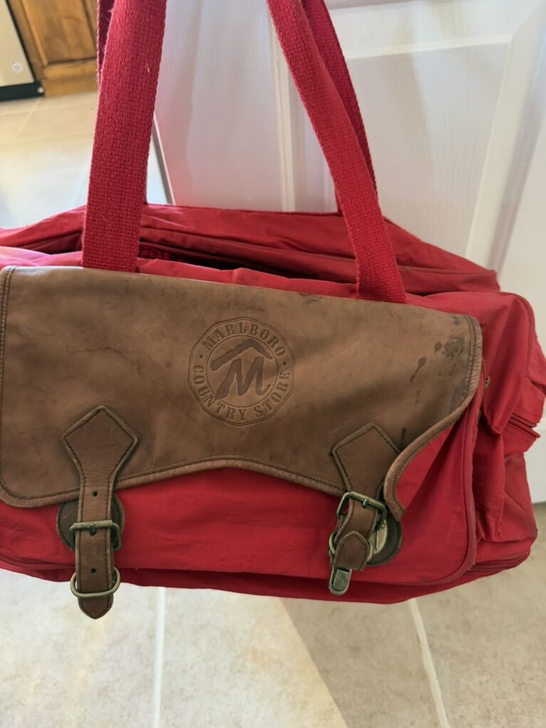 Vintage Marlboro duffel bag 21” L 12” T 10” D it does have wear.