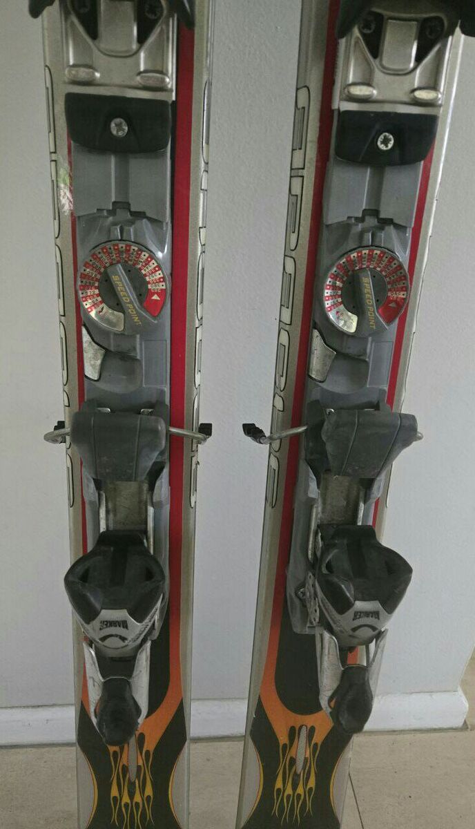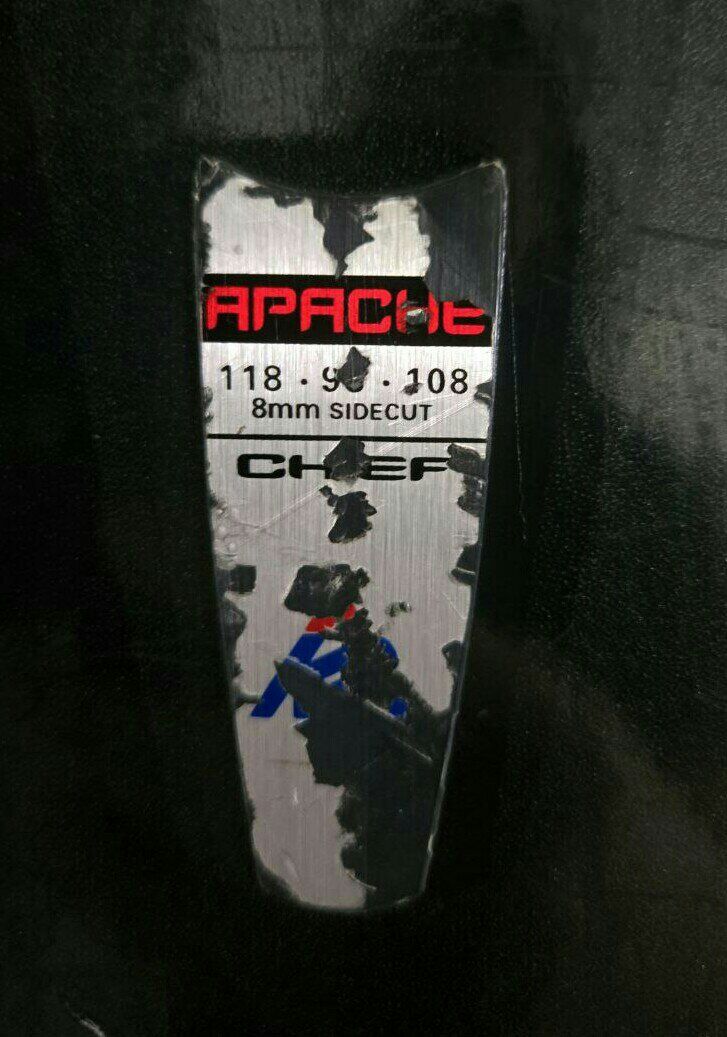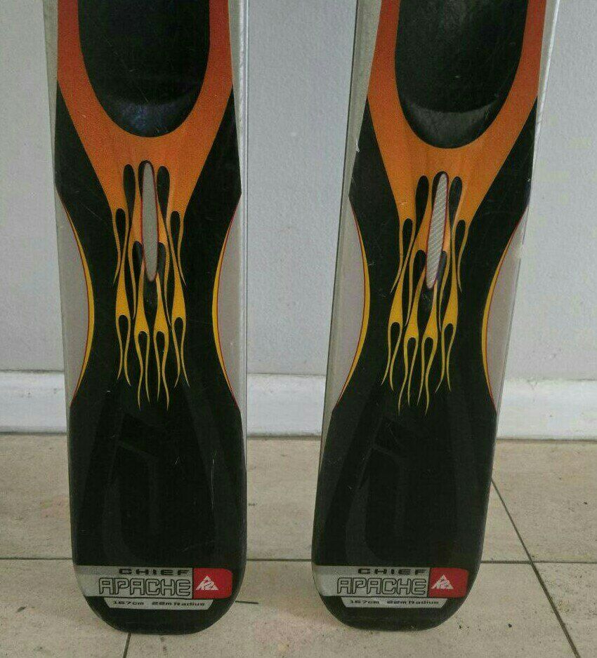 Nice 167 cm Men’s K2 Apache Chief downhill skis with Marker Titanium 1200 easy to adjust to your boot size bindings. Tip-118mm Waist-98mm Tail-108mm. Topsheets, bases and edges are in great condition. Text please!