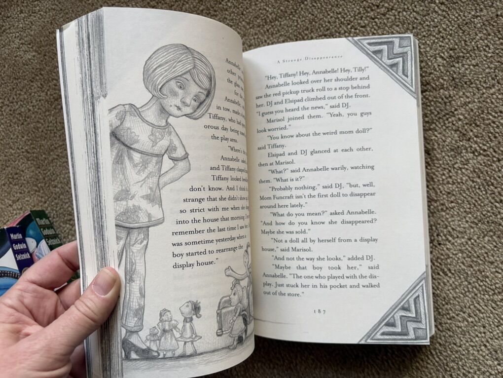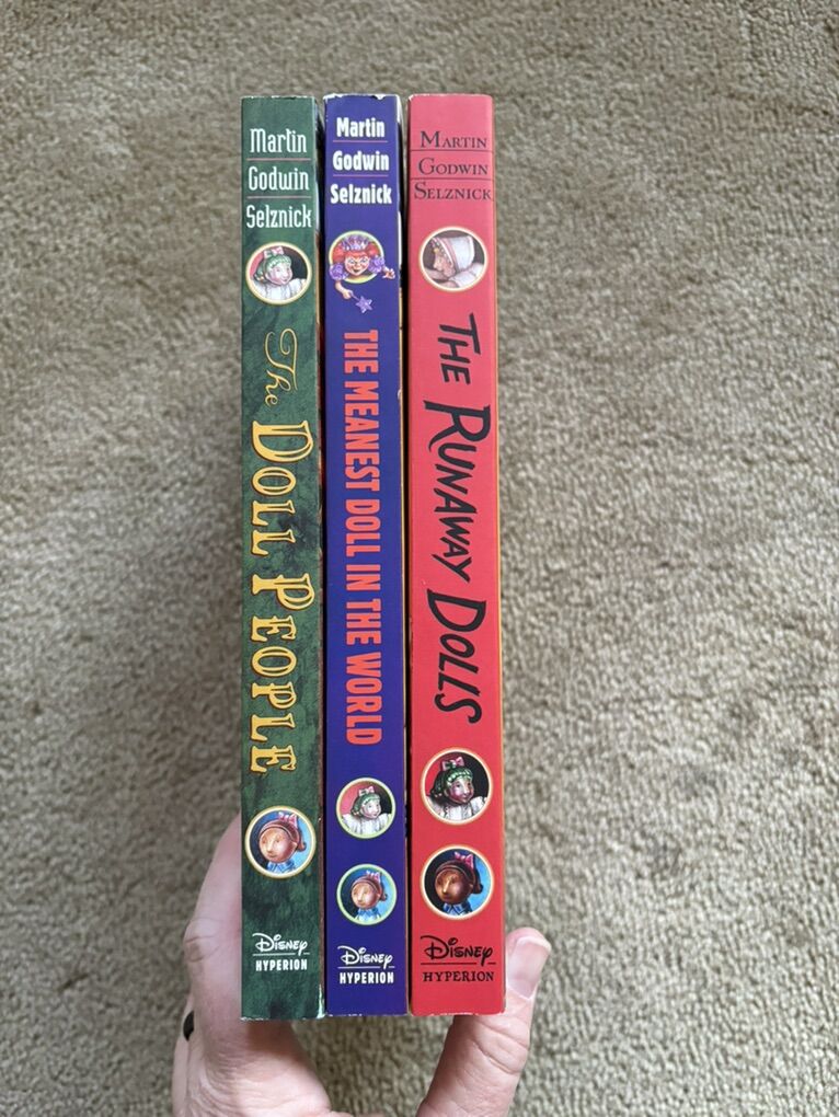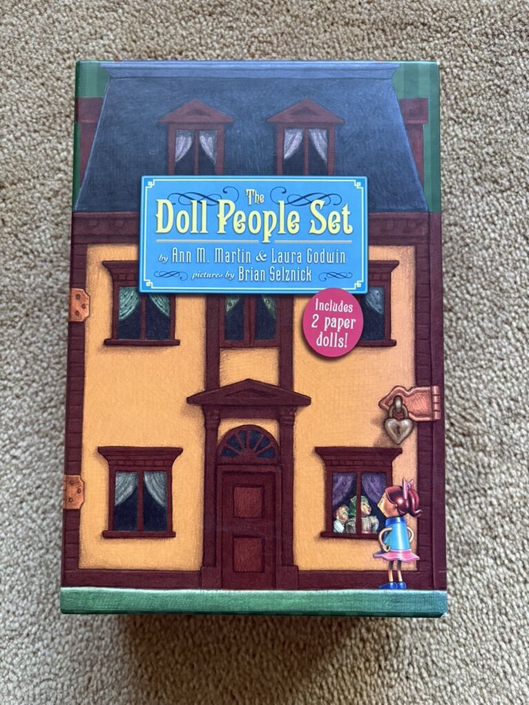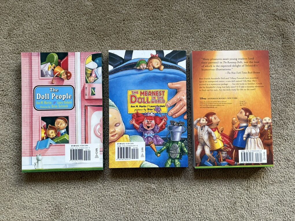 The Doll People Boxed Set, by Ann M. Martin & Laura Godwin, illustrated by Brian Selznik: The Doll People, The Meanest Doll in the World, and The Runaway Dolls. Oversized paperbacks in a sturdy box. (Missing paper dolls.) Disney Hyperion, 2000, 2003, 2008. Ages 8-10 years. Very good condition. Text only. Cash or Venmo. Discount on multiple items.