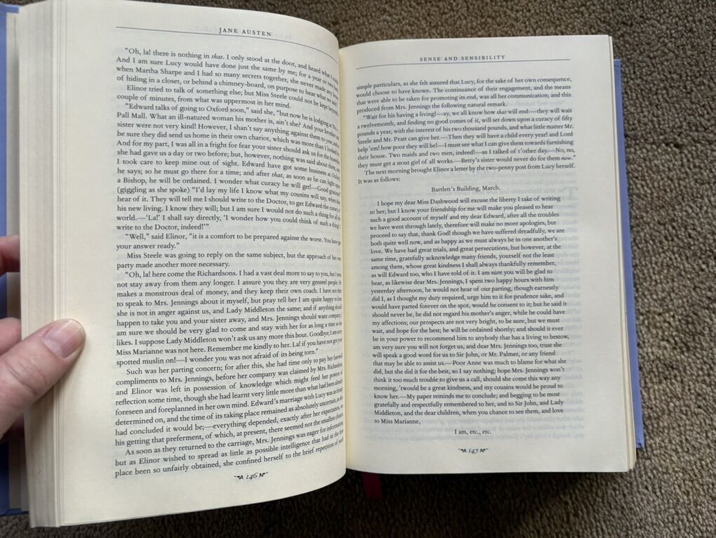 The Complete Novels of Jane Austen: Sense and Sensibility, Pride and Prejudice, Mansfield Park, Emma, Northanger Abbey, and Persuasion. Beautiful embossed lavender cover, ribbon bookmark, gold-edged pages. Canterbury Classics Edition, 2019, 1210 pages. Excellent condition, like new. Text only. Cash or Venmo.