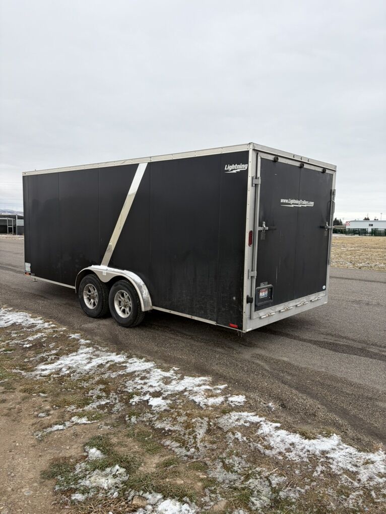 Aluminum enclosed snowmobile trailer. Ready to go. Tires in good shape. Extremely light. Inside finished. 18’ box plus nose. Clean title. Call or text Kade at 2082210041. Thanks.