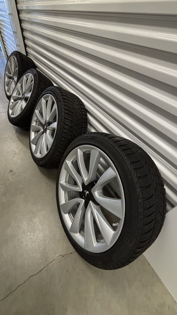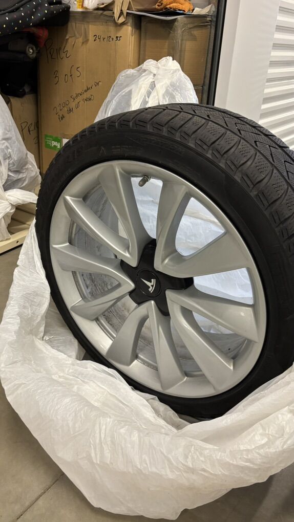 PayPalWinter tires 19” Tesla Sport wheels Winter tires on 19” Sport wheels OEM Tesla 235/40 R19 Pirelli Sottozero 3 19” winter tires OEM Tesla Wheels fitted with TPMS BLE sensors which automatically pair with the car through Bluetooth. (I also have a set of the 2019-2020 RF TPMS) NO CURB RASH! Cash or Venmo Pick up near Park City (Can deliver for $50 extra) P.s. These are softer compound Winter Tires for use from November to April in cold temps. New tread depth is 10/32nds, these are about 6/32nds to 7/32nds. - legally they can go to 2/32” but it’s best to change at 4/32s - so another winter season or two depending on how much you drive. They will fit on a Tesla Model 3 2019-2023 AWD or RWD. For a Performance Model 3 you need spacers to make the wheels fit over the larger red brake calipers.