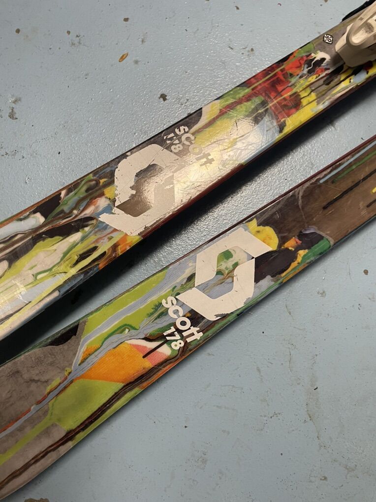 VenmoGood condition. Center mounted bindings are set for a BSL of 313 and has some adjustment either way.