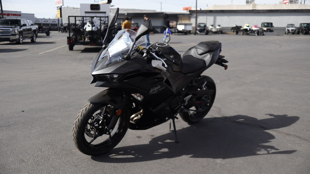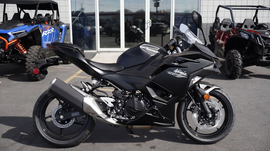 2026 Kawasaki Ninja® 500 Metallic Flat Spark Black PERFORMANCE FOR EVERY RIDE Features may include: POWER BIG POWER. LIGHTWEIGHT PACKAGE. A robust engine, detail-driven design, advanced features, and supreme comfort are just the start of what makes the Ninja® 500 motorcycle impossible to ignore. This highly capable sportbike offers exhilaration across a broad skill spectrum—crafted with ample control for newer riders while offering some extra punch to appeal to a wide range of riders. HANDLING AGILITY FOR ALL Ample power is met with a lightweight, compact chassis for predictable handling and sharp maneuverability. From canyon roads to daily commutes, the Ninja® 500 is built to inspire more confidence. ERGONOMICS CRAFTED FOR COMFORT A sporty riding position, carefully selected materials, user-friendly design, and on-board amenities make the Ninja® 500 a perfectly comfortable ride. STYLING CLASSIC NINJA® APPEAL There’s no mistaking a Ninja®—and this ride is no different. Innovative style and bold design choices combine for a fresh, modern take on the iconic look. ADDITIONAL: Assist & Slipper Clutch Lightweight trellis frame Uni-Trak® rear suspension Available with Anti-lock Brake System (ABS)