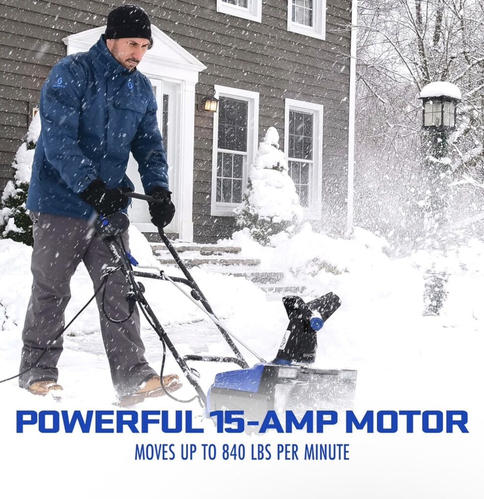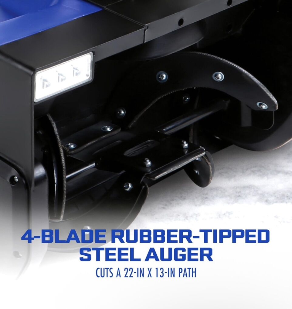 Ideal for clearing snow off larger driveways and walkways No gas, oil or tune-ups make it effortless to start and maintain Powerful 15-amp electric motor moves up to 840 lbs/min. of snow All-Steel auger cuts 22 in. wide by 13 in. deep path with each pass 180 adjustable directional chute throws snow up to 25 ft