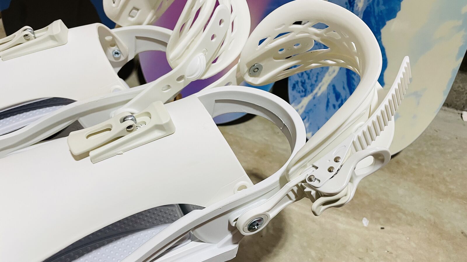 Snowboard Bindings: White & Black, Sizes M (EU 38–42 / US 6–9 men, 7.5–10.5 women) & L (EU 42–45 / US 9–11.5 men, 10.5–13 women)