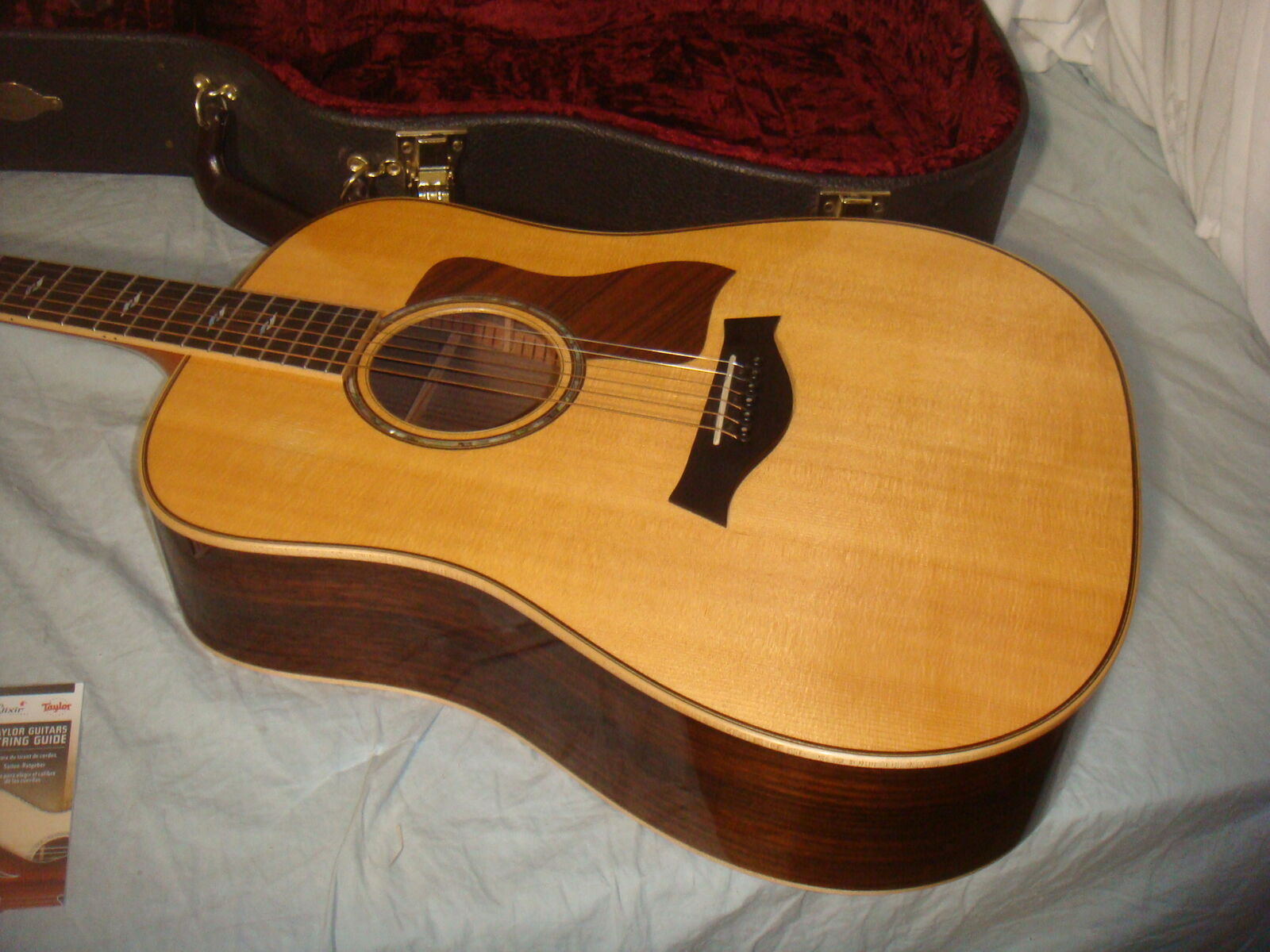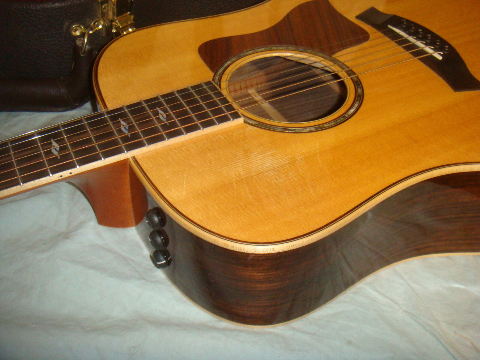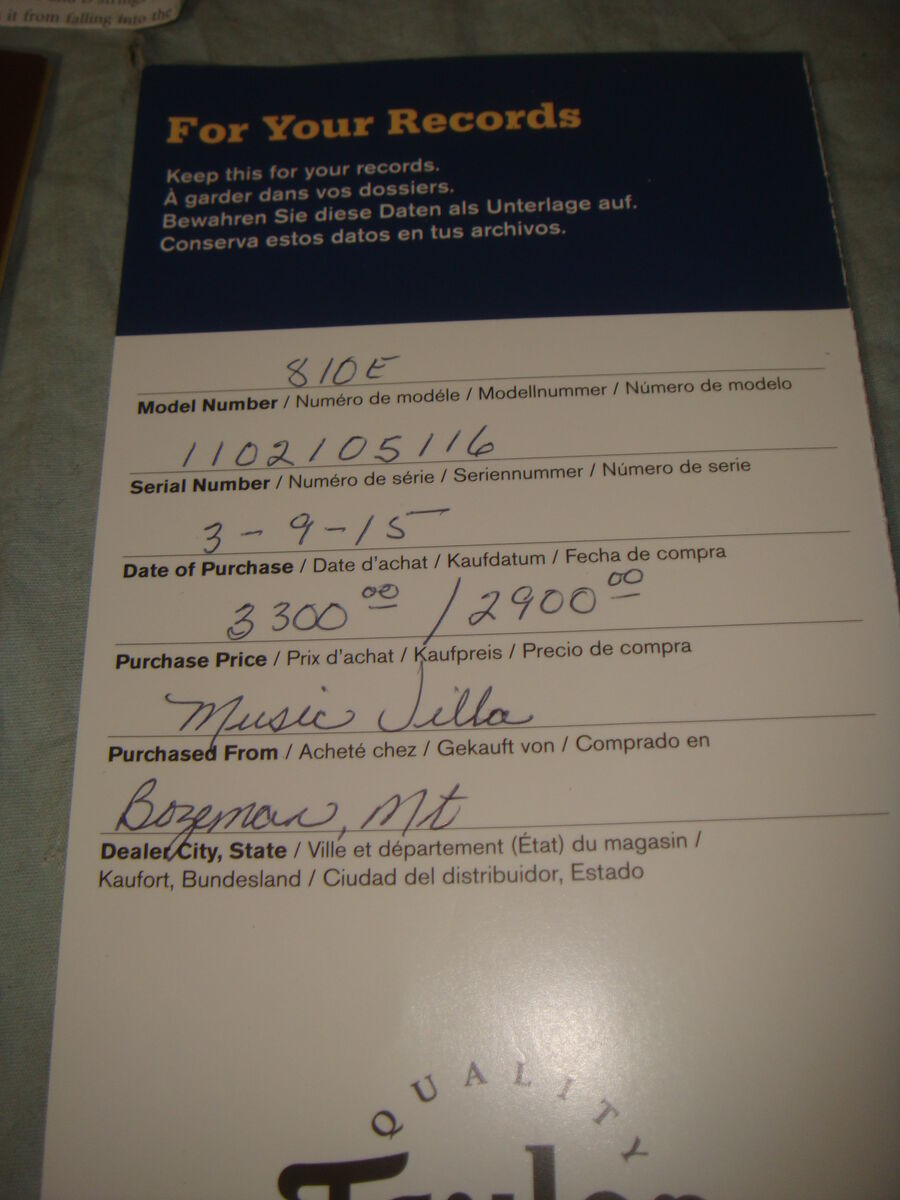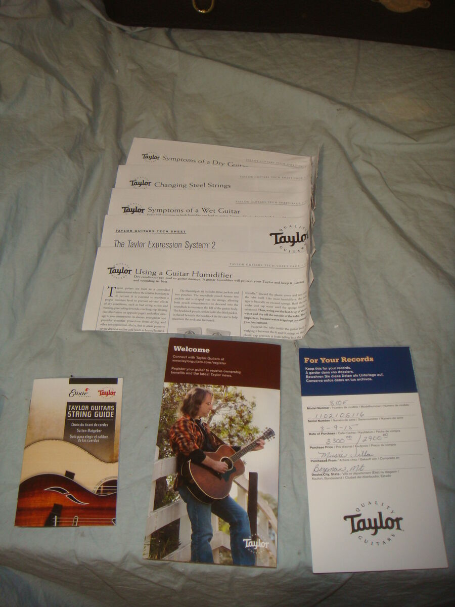 TAYLOR 810E DREADNOUGHT ACOUSTIC-ELECTRIC GUITAR WITH HARD CASE. This is a used guitar that is in great overall condition with only a couple of minor exceptions. There is some minor pick pick wear in the finish above the strings that's slightly through the finish in a few spots, but you have to look close to even notice. We'll do our best to show in the photos. There's one pick mark/scratch below the pick guard and some more minor pick marks below the pickguard toward the lower bout that are much more minor that we'll try to show as well. Again, minor. The pickguard looks new, so there may have been some pick wear underneath it, but it looks amazing, so we aren't going to mess with it. The only other thing, is that on the bottom of the body on the corner just below the top of the lower bout, there's a small crack just below the purfling. It's small, but you can feel it if you run your finger across it, so one might want to repair it. It should be a fairly simple fix. Otherwise this guitar is absolutely beautiful and in excellent condition! The case has some minor marks and signs of use, but is also in great overall condition. This was originally purchased in 2015 from Music Villa in Bozeman Montana. Retail was $3300. In my opinion, this is a much nicer version of the 810CE than the current legacy model. The purfling is wood vs white, and it just looks nicer. Because of the nature, we're selling it at a killer price! It comes with everything shown. This is your chance to save big-time so don't miss out!!