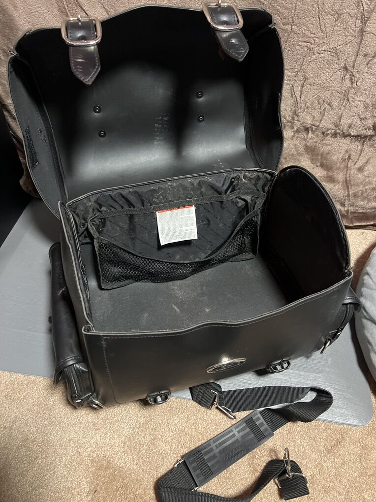 For your consideration is a Saddleman Express Drifter Trunk Bag. It is used however not abused. I used it for short over night runs, for which it has worked perfectly. It has some scuffs, all zippers, latches and Clasps work just fine.