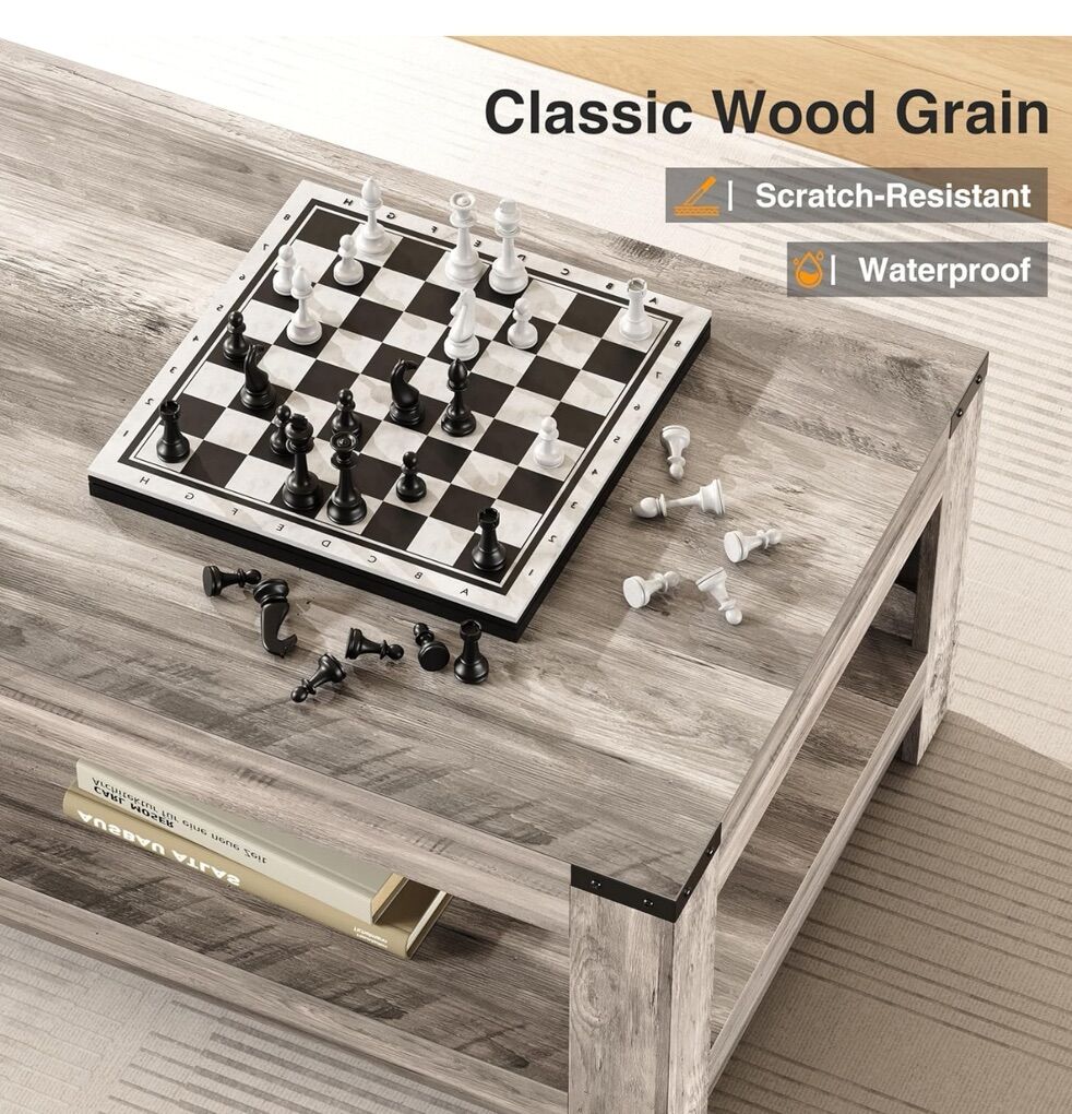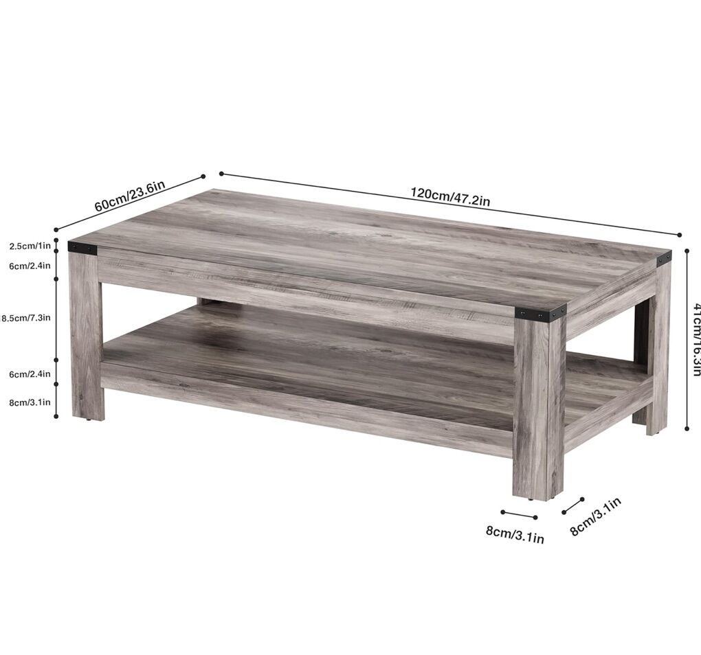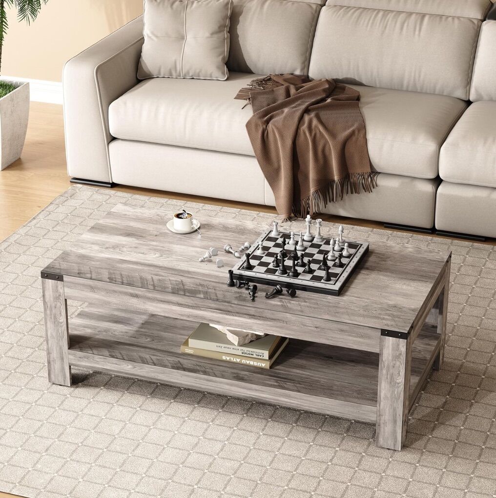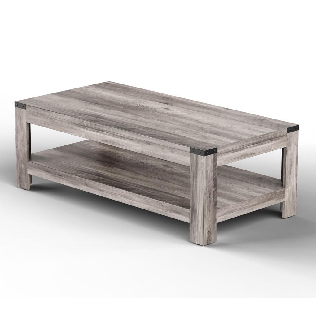 Farmhouse Coffee Table, Modern Rustic Wooden Center Table with Storage, Living Room Tables, 2-Tier Industrial Cocktail Tea Table for Living Room (Wash Gray, 47.2 in)