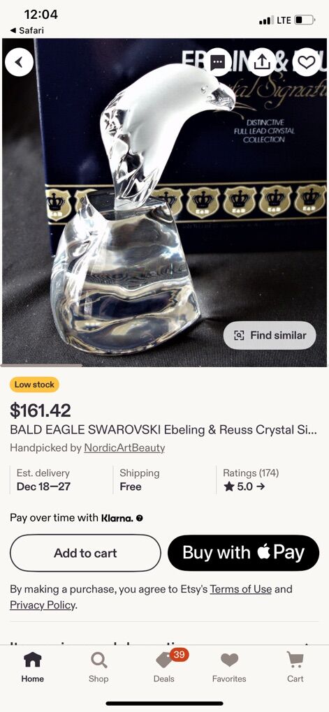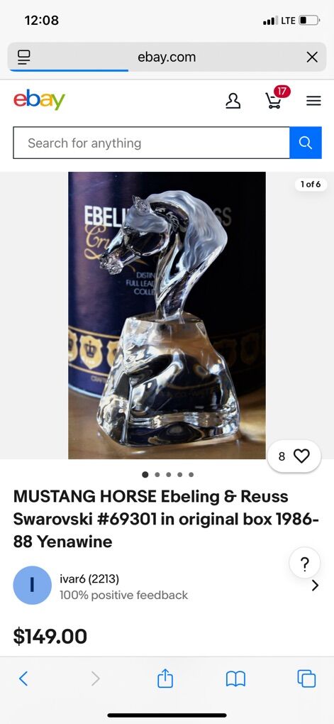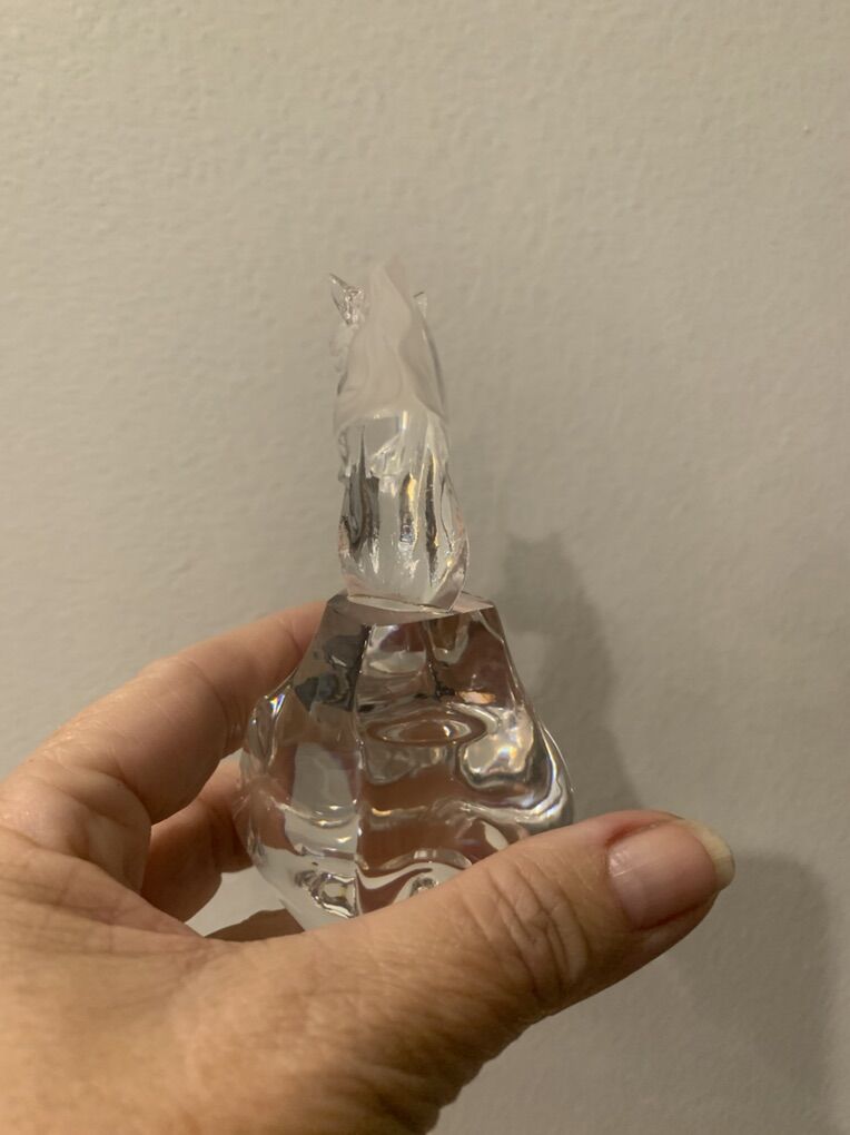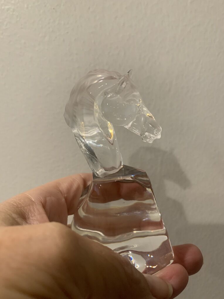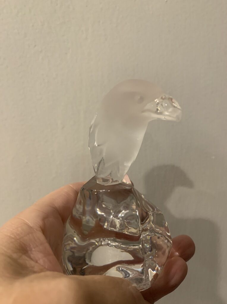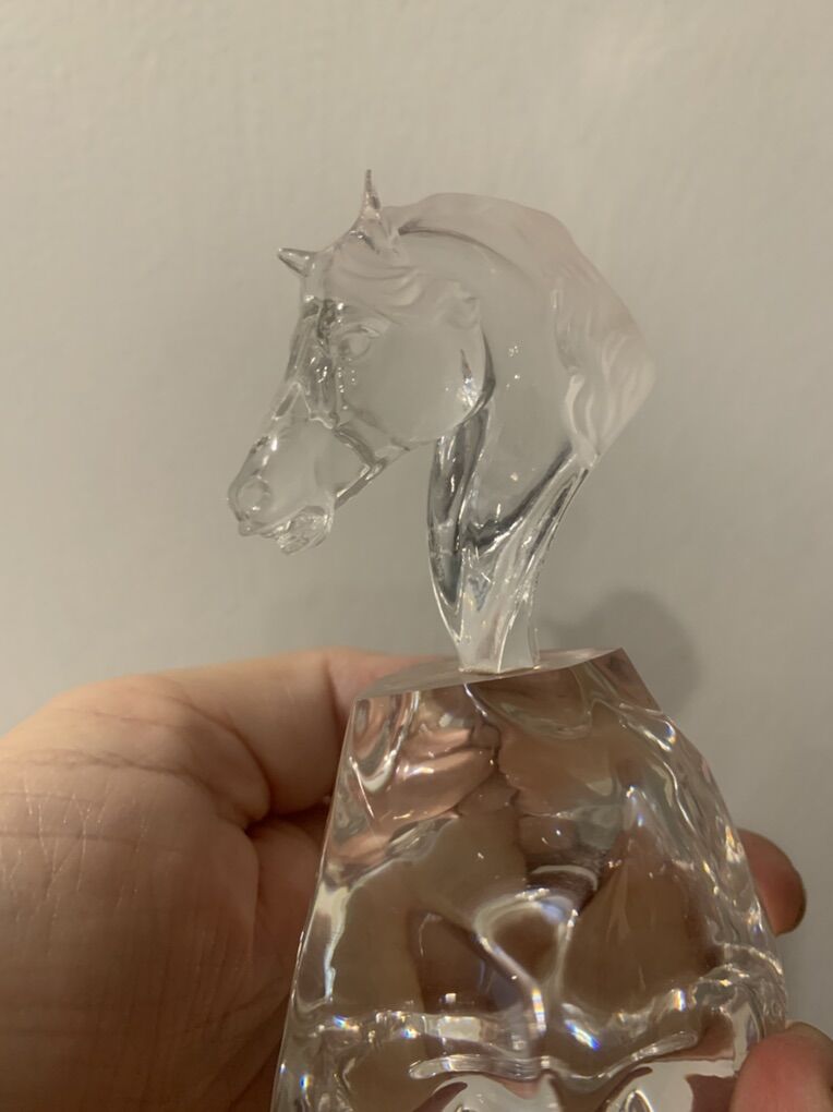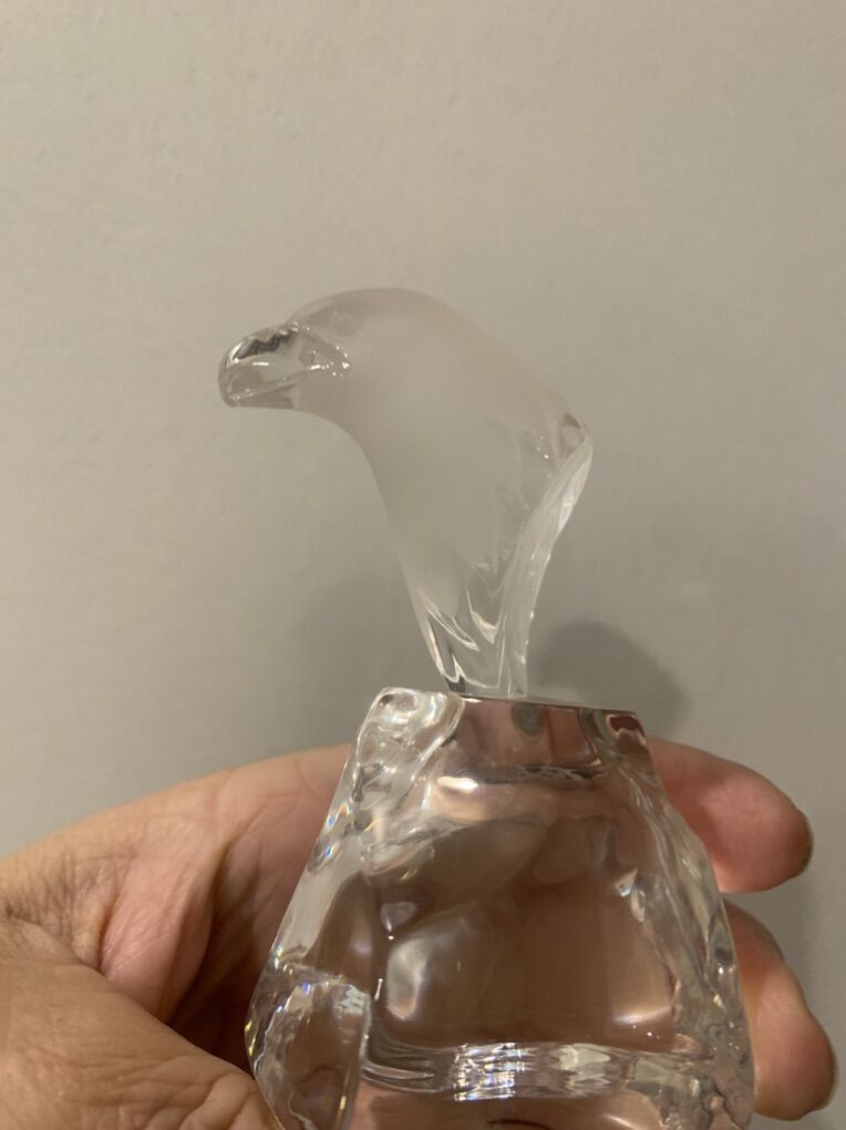 The Swarovski Ebeling & Reuss Crystal Long Horned Ram Head / Bald Eagle / Mustang Horse with Frosted tips is a crystal figurine created in collaboration between Swarovski and Ebeling & Reuss (E&R). They a collectible pieces from the Crystal Signatures line produced in the early 1980s. Key features: Design: Features a clear crystal ram head with frosted horns. Clear Mustang head with frosted mane. And a Frosted crystal head with clear beak