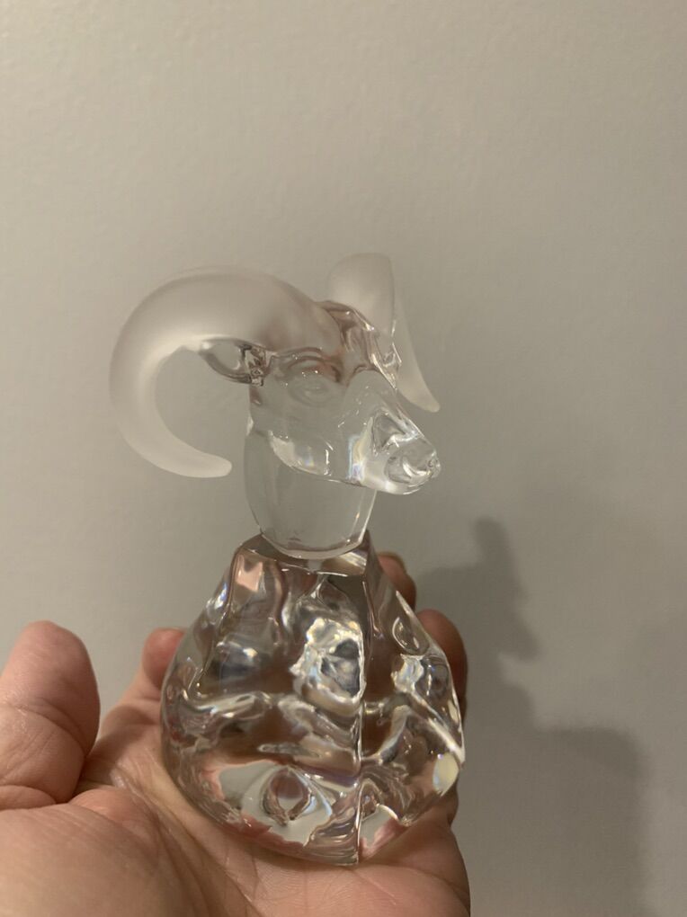 Vintage Swarovski Ebeling & Reuss Crystal Ram Head Bust W/ Frosted