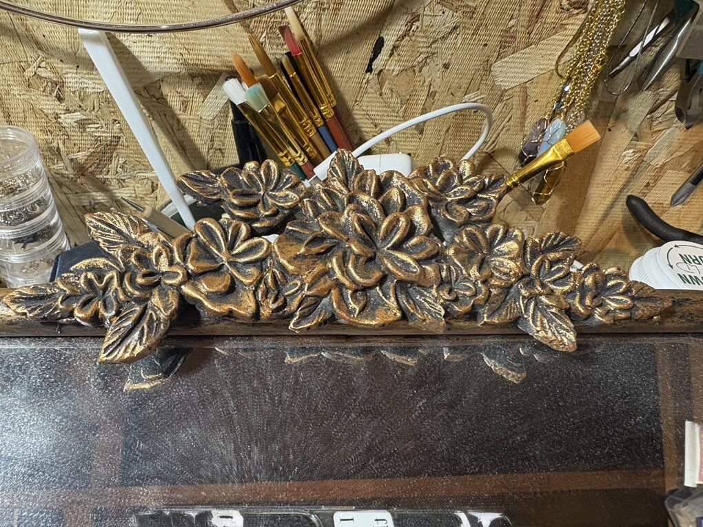 Gorgeous vintage inspired gold floral mirror. From the top of the flowers 18” long x 13” wide