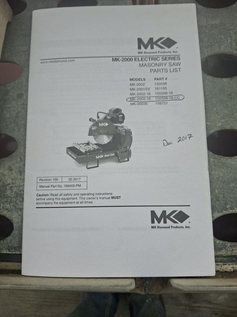 Zellelike new MK Brick saw used very little. 30 amp 220 volt electric motor. Comes with the stand, water pump and 2 - 75ft extension cords. I am retiring so I am selling this along with other landscape equipment.