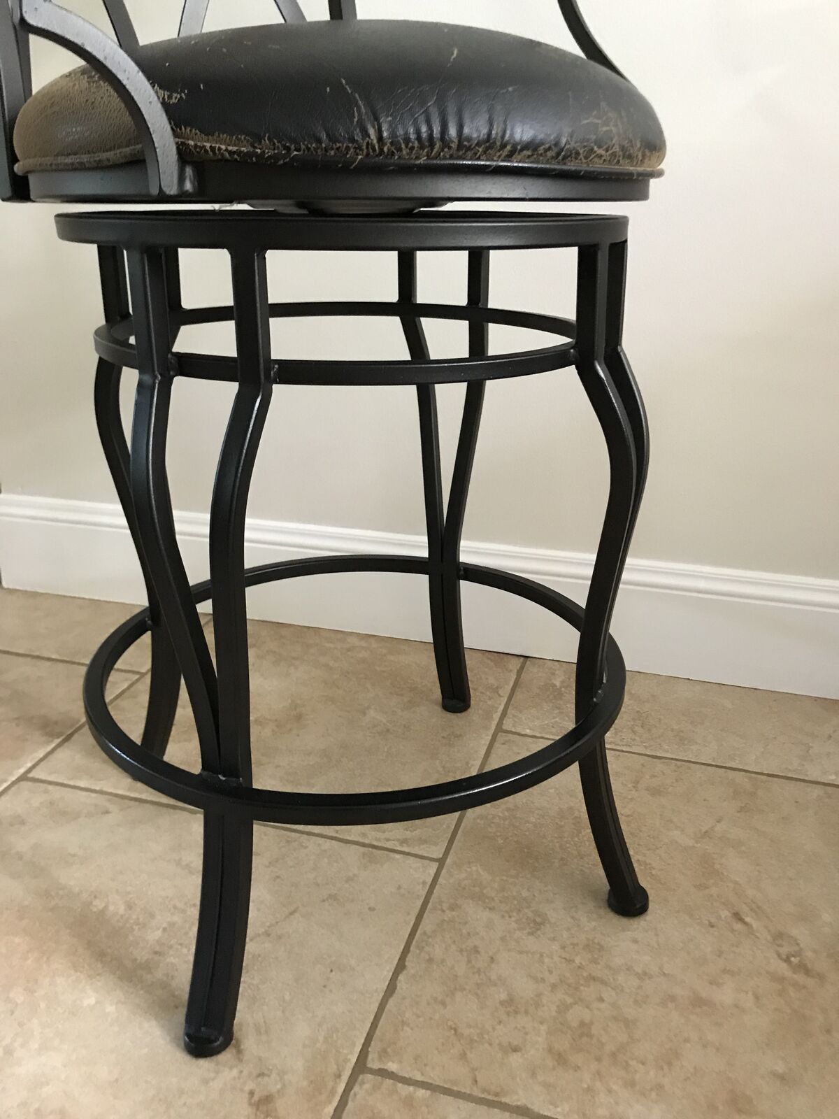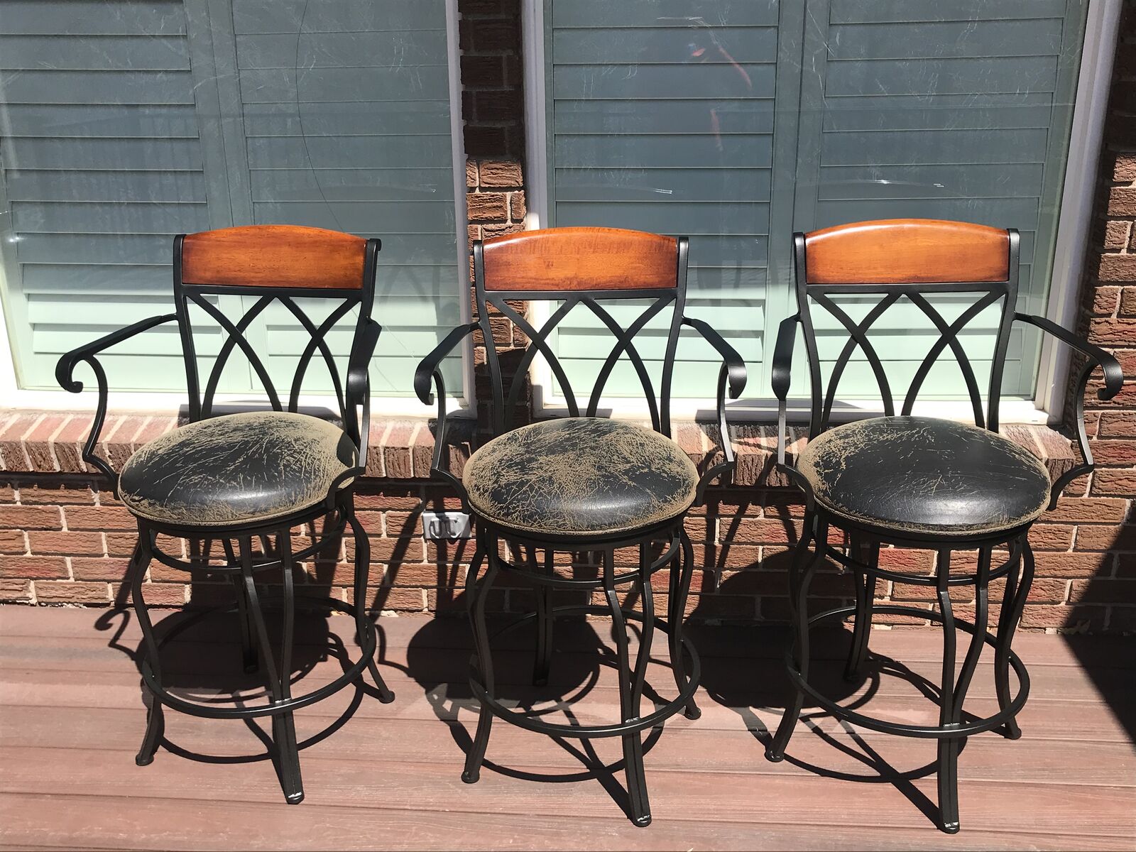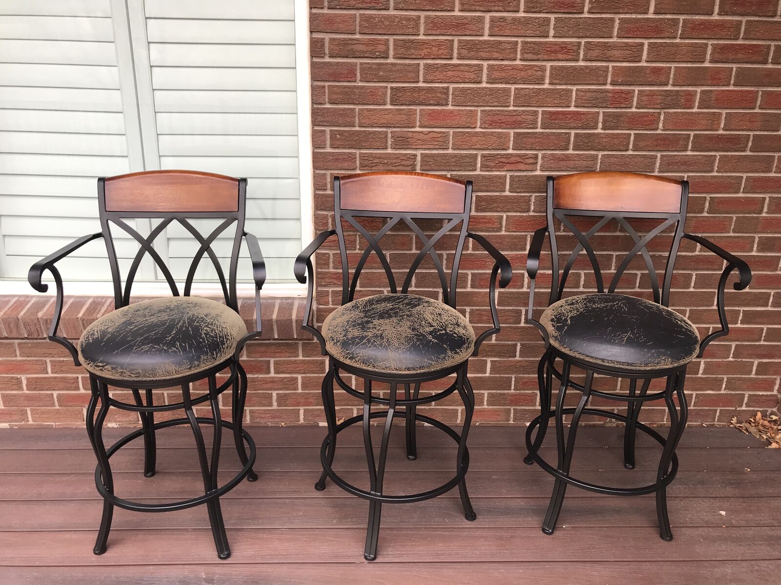 VenmoThese bars stools with arm rests and leatherette cushion seating are easy clean should there be a spill. The chairs rotate 360 degrees . Has comfortable footrests too! Excellent condition. No rips or stains. Smoke free , Child free , dog free , cat free home . These were purchased at local SLC high end store. Chairs are rod iron not aluminium . There are 6 chairs. standard counter top height . venmo or cash
