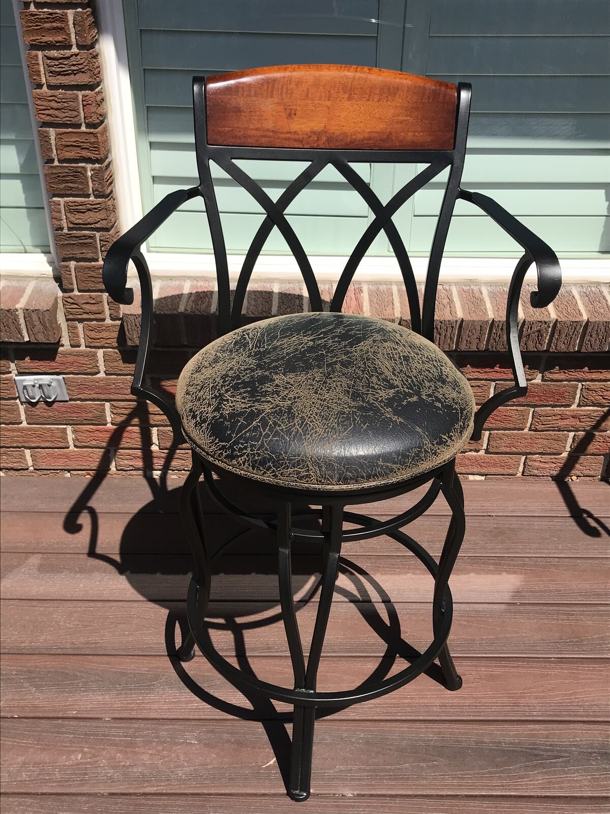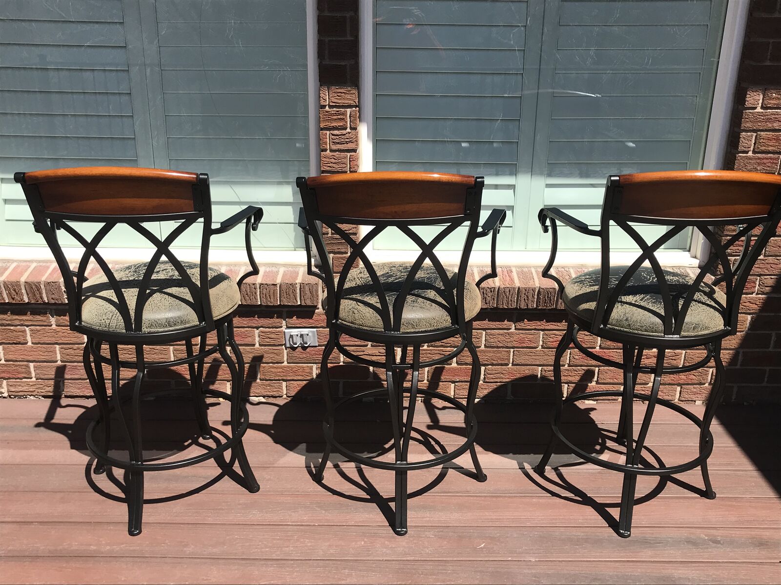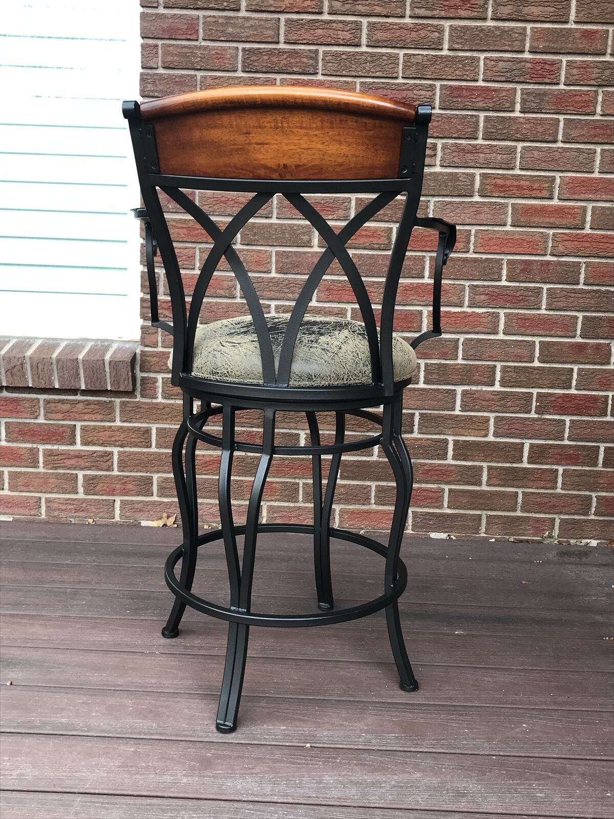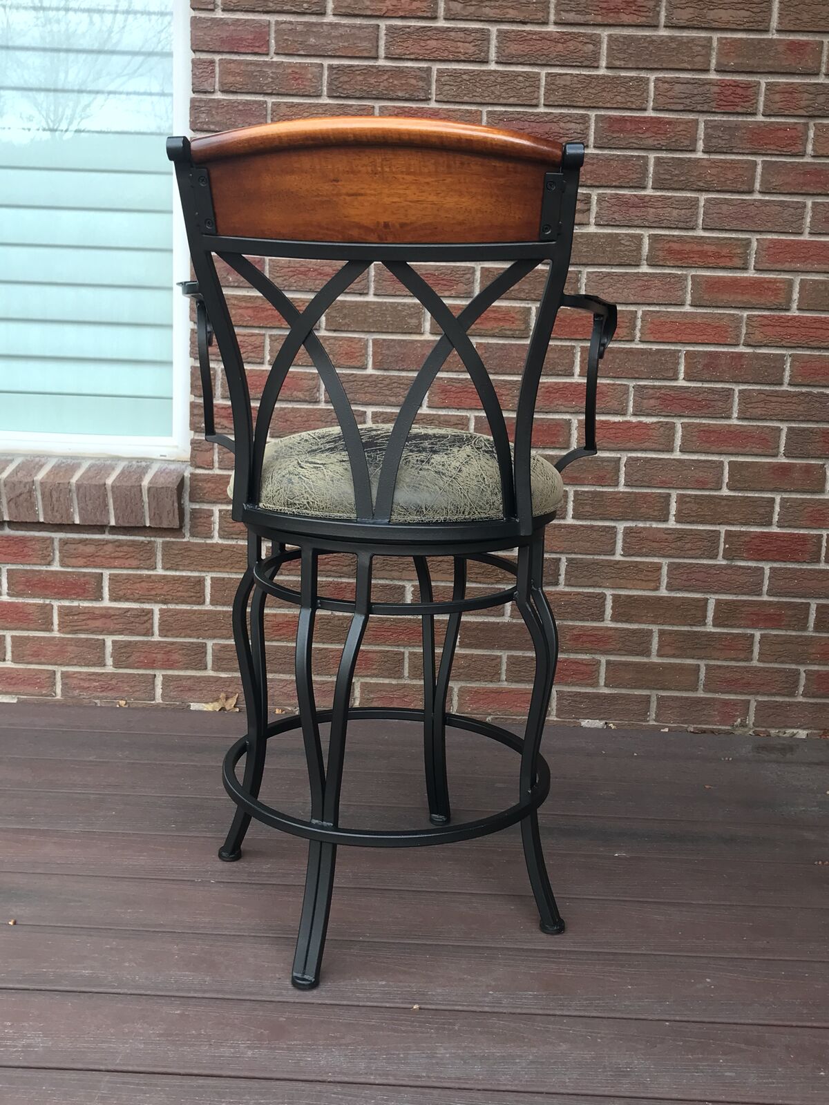 VenmoThese bars stools with arm rests and leatherette cushion seating are easy clean should there be a spill. The chairs rotate 360 degrees . Has comfortable footrests too! Excellent condition. No rips or stains. Smoke free , Child free , dog free , cat free home . These were purchased at local SLC high end store. Chairs are rod iron not aluminium . There are 6 chairs. standard counter top height . venmo or cash