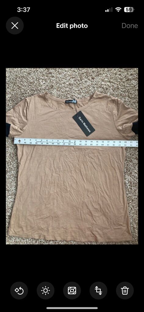VenmoBrand new with tags Sarin Mathews rayon top. Beige with black trim on sleeves. Stretchy fabric. Looks great for office or casual.