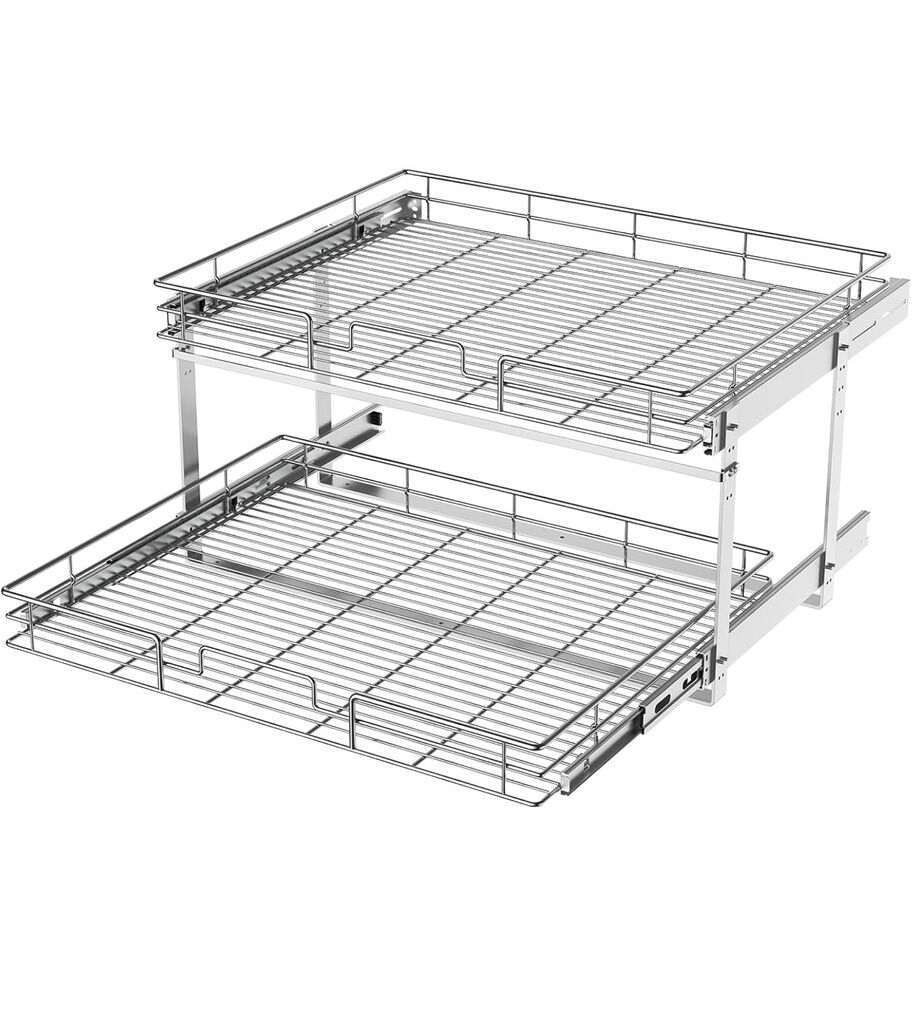 I have 2 LOVMOR 2 Tier Individual Pull Out Cabinet Organizer 27 W x 22 D, Slide Out Kitchen Cabinet Storage Sliding Shelves Retails $133 $60 each