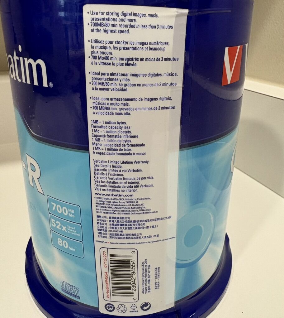 VenmoVerbatim 94554 700MB 52x CD-R Disc - Pack of 100