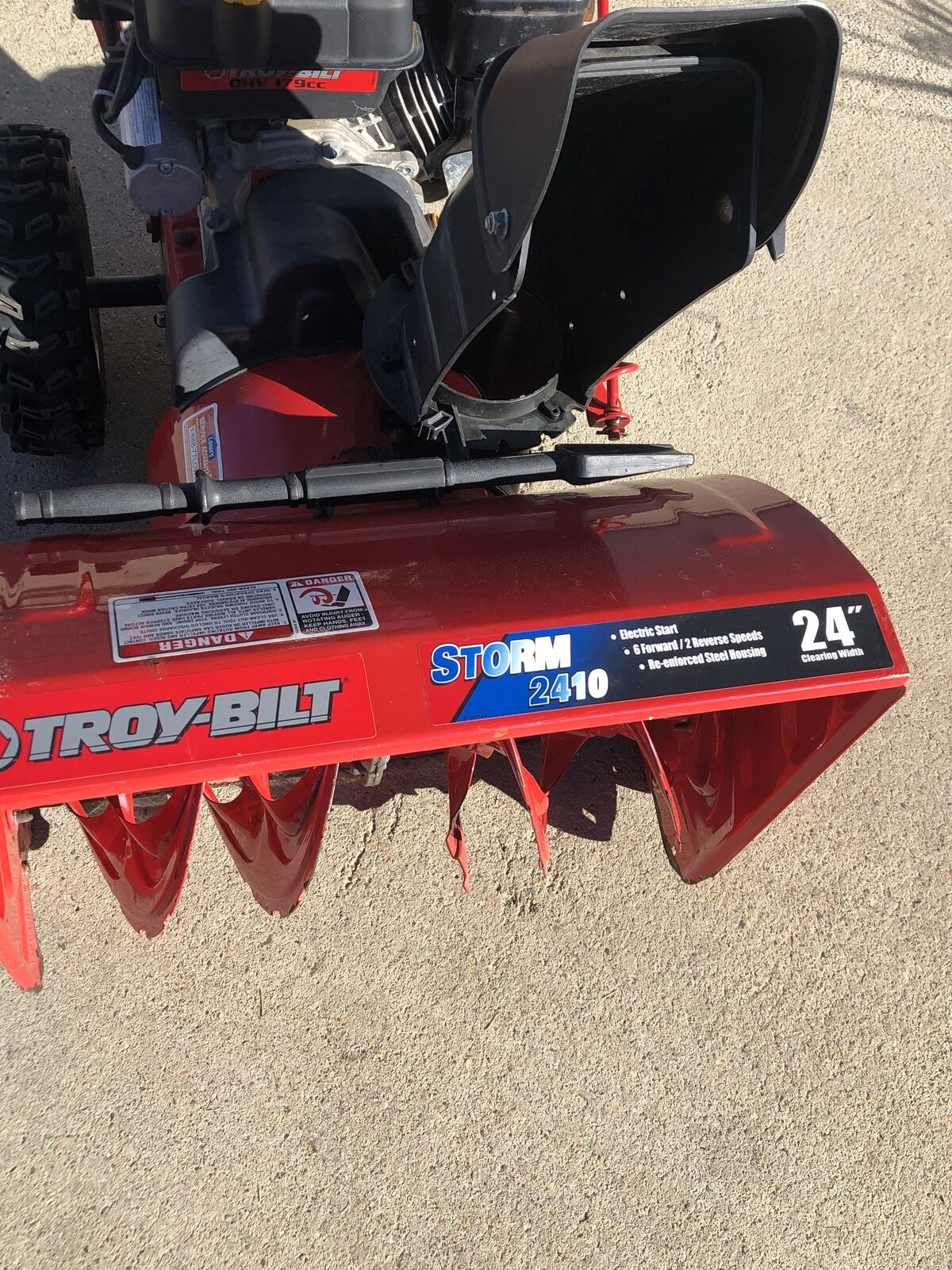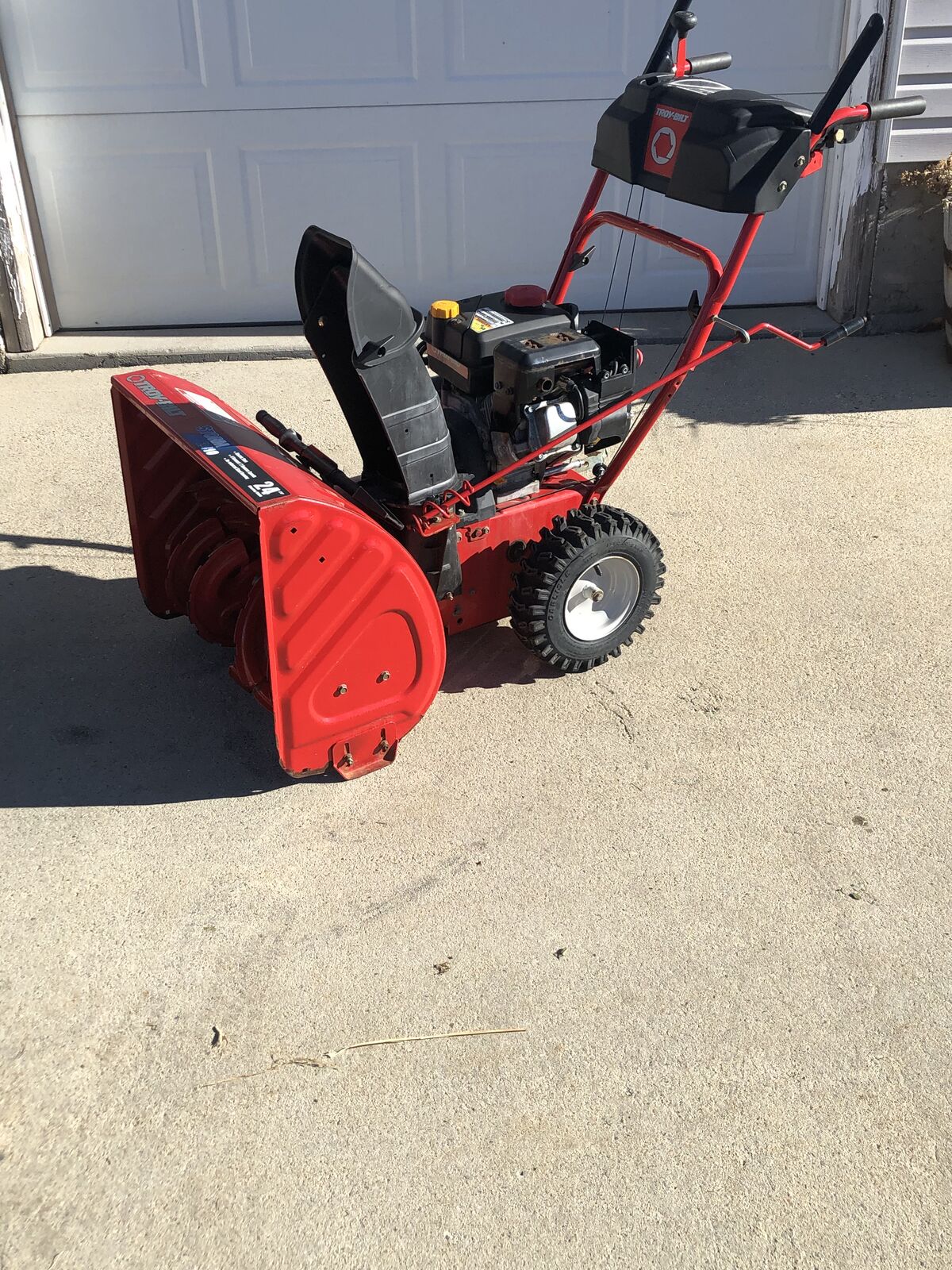Electric start Troybilt storm snowblower with 24 inch bucket. It’s had a tuneup and a great machine and is ready to be put to work.