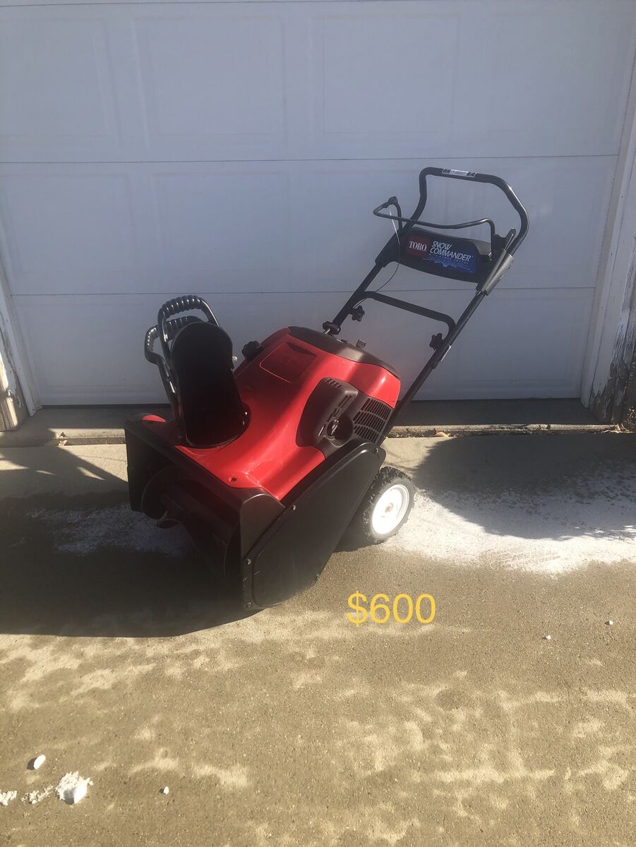 Electric start Toro snow commander snowblower in great condition. It’s been serviced and also has a new carburetor and belt. It has a power propel feature and is ready for winter.