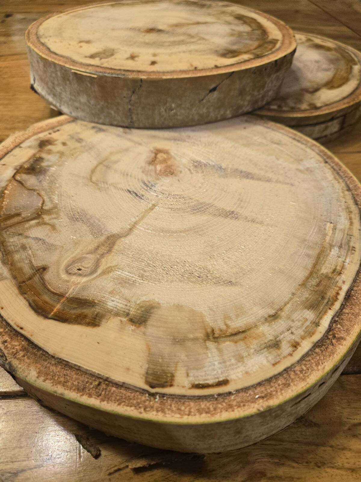 VenmoWood slabs, dinner plate size. Cut in various thicknesses from 2 inches to 6 inches. 12.00 to 25.00