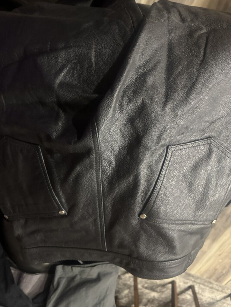 VenmoNot worn Roadkrome motorcycle black heavy leather full length men’s pants size large 34”