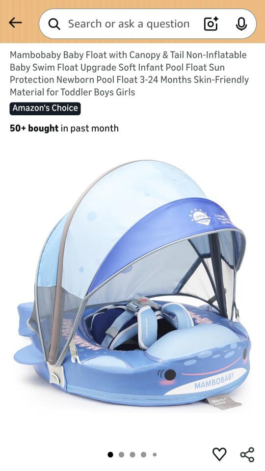 Mambobaby baby swim/pool floaty. I bought it the middle of last August to visit family out of state, I put baby in it for them to scream because the water was too cold.. so not brand new, but hardly used. My babe will be too big for it by the time I could use it again, my loss your gain! Unfortunately the sun shade got a little bit sun faded from leaving hung out to dry, but it's still perfect otherwise. Just cleaned, and ready for a new home! OBO.