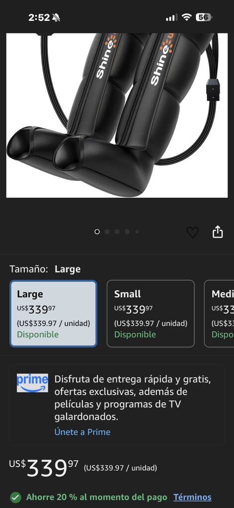 SHINE WELL Professional Leg Recovery and Massage System, Air Compression Therapy Device with 11 Intensities, 4 Selectable Massage Areas (Large) See Less