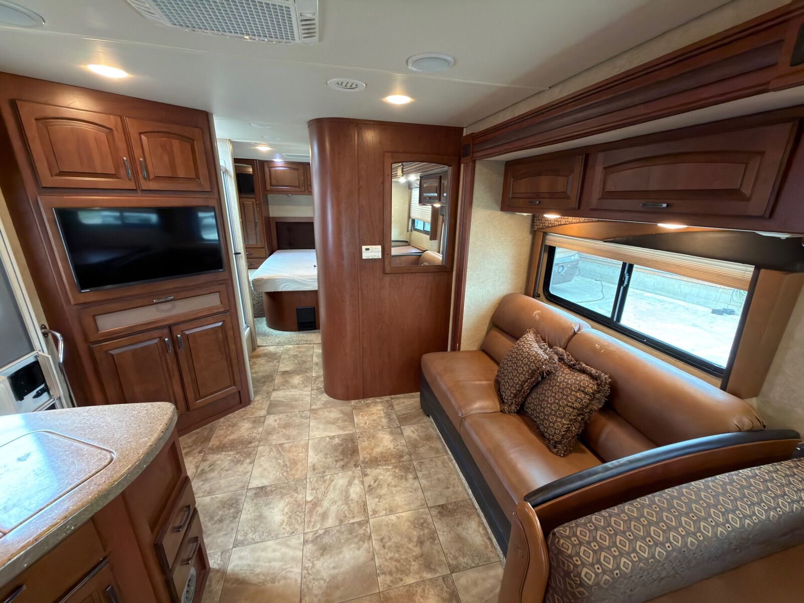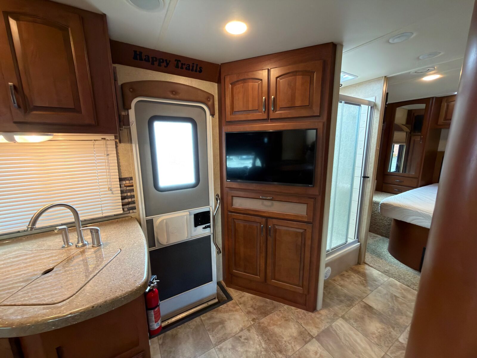RV queen in rear