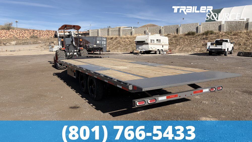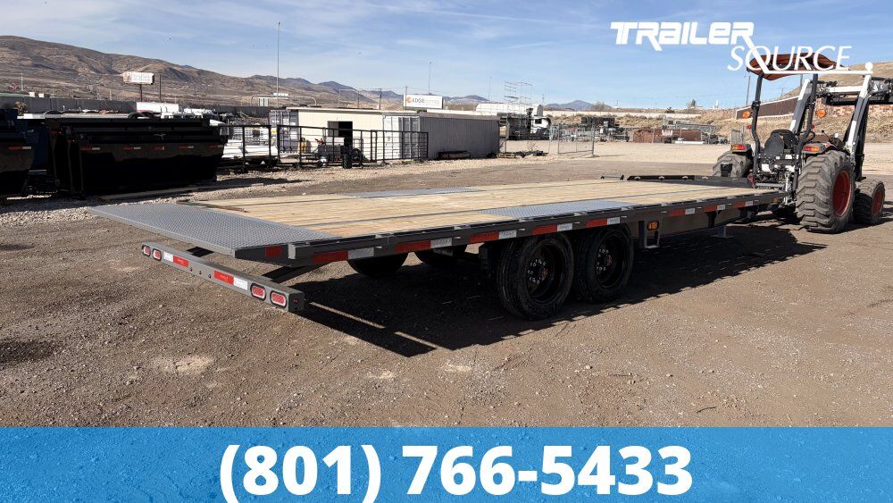 PERFECT FOR Transporting Wide-Stance Equipment Standard trailers have fenders that eat into your deck space. The DET208 provides a completely flat, 102" wide surface. This makes it perfect for: Agricultural Equipment: Wide-tread tractors, hay balers, and sprayers. Scissor Lifts and Forklifts: The tilt feature allows these low-clearance machines to drive straight up without bottoming out on ramps. Dual-Wheel Trucks: Hauling a "dually" pickup is much safer when you aren't squeezing between narrow fenders. "Hot Shot" Hauling and Palletized Freight For operators in the Hot Shot trucking industry, the DET208 is a versatile workhorse. Side Loading: Because there are no fenders, a forklift can load pallets or building materials (like lumber or roofing) directly from the side along the entire length of the trailer. Efficiency: The power tilt saves significant time and physical strain compared to sliding heavy 8-foot ramps in and out for every load. Construction and Earthmoving The 18,000 lb GVWR (Gross Vehicle Weight Rating) is the "sweet spot" for mid-sized construction machinery. It is ideal for: Skid Steers and Compact Track Loaders: Especially those with wide buckets or attachments