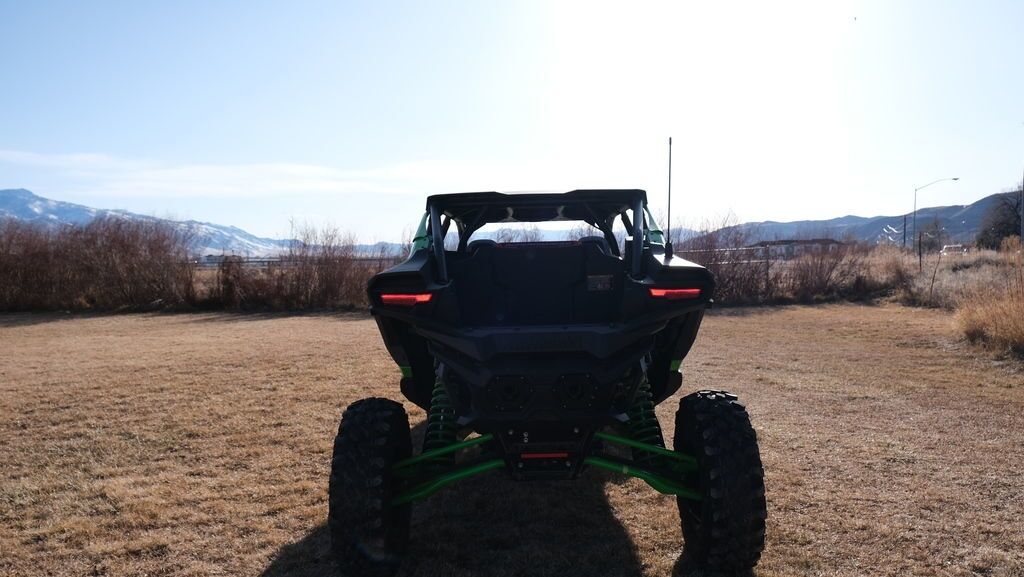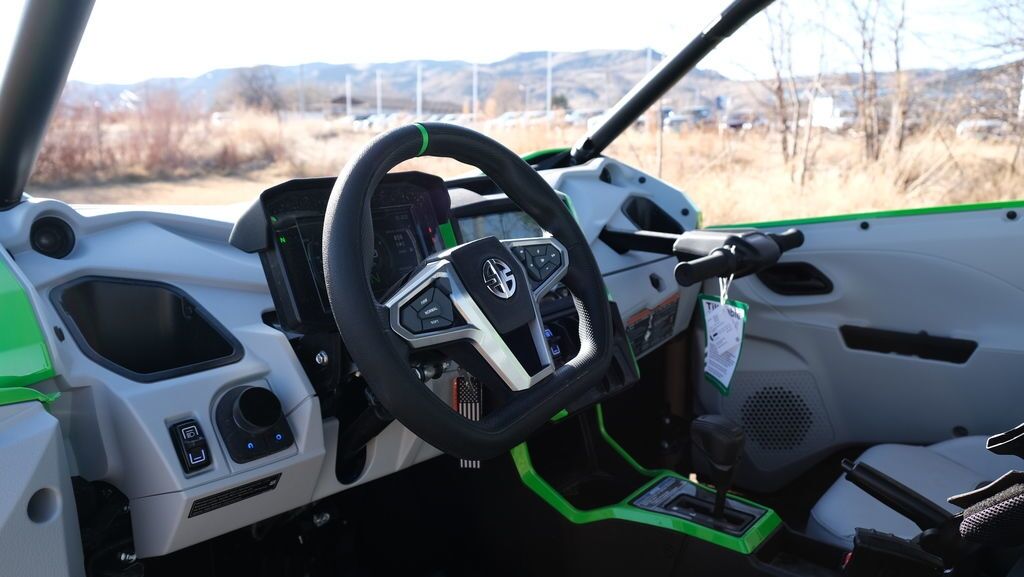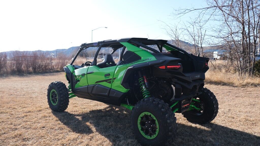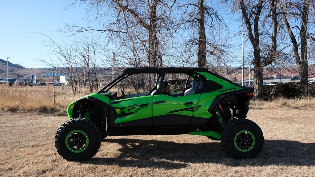 STOCK NUMBER: 0390 2026 Kawasaki Teryx®4 H2 Deluxe eSThe all-new Teryx®4 H2 and Teryx®5 H2 high-performance side x sides are designed for dune and desert domination. The 250-HP¹ 999cc in-line 4-cylinder supercharged engine is harnessed by a continuously variable transmission (CVT) and a highly rigid frame complemented by long-travel suspension that helps balance the engine's massive power for maximum control. Predictable handling and confident stopping power add to the well-balanced package delivering maximum fun that can be shared with the whole family.Features may include:250-HP SUPERCHARGED PERFORMANCEAt the heart of the all-new Teryx®4 H2 and Teryx®5 H2 high-performance sport side x side is Kawasaki’s newest 250-HP¹ supercharged engine that is built beyond belief.33-IN TIRES & KECS WITH ACCELERATION SENSORSKnowing that power is nothing without control, Kawasaki engineers went to great lengths in designing the transmission, frame, and suspension to allow drivers to take full advantage of the engine’s potential, resulting in smooth, linear power delivery, a highly composed character, predictable handling, and confidence-inspiring brakes.TAKE LEISURE-TIME FUN TO THE EXTREME WITH UP TO 5 PASSENGERSThe Teryx4/5 H2 side x sides don't compromise on delivering enjoyment to you and your passengers. Whether it’s the ease of getting in and out or strapping into the well-padded, ergonomic seats, the roomy cab and its high-grade, automotive-style fit-and-finish add to the thrilling supercharged experience.LOW PROFILE SILHOUETTE DESIGNAs the new Teryx® side x side flagship, it was important that the Teryx4/5 H2 side x sides look the part. The sleek, low-profile design, wide stance, and aggressive front-end are complemented by luxuriously painted Lime Green bodywork—a head-turning combination that conveys both its high level of performance as well as its high-grade build.