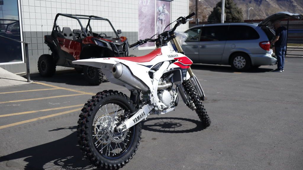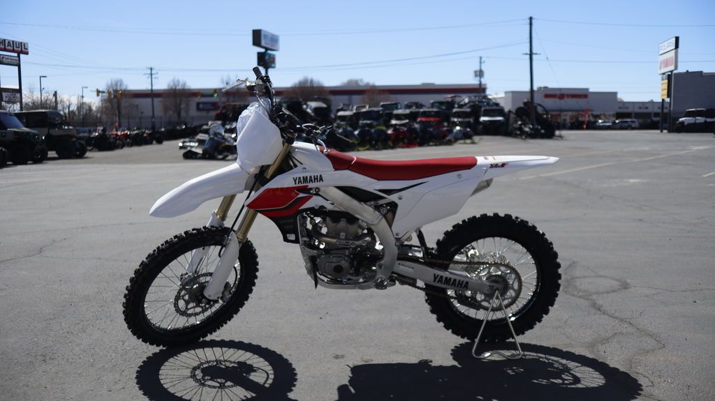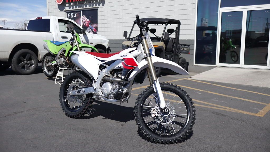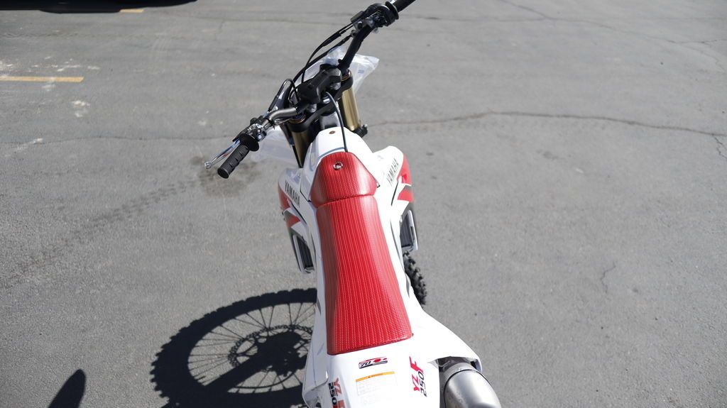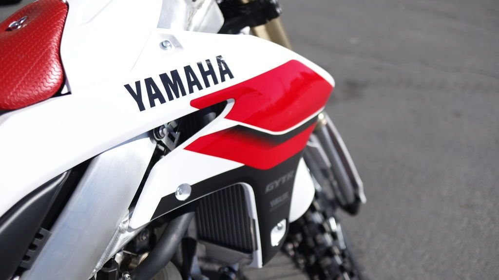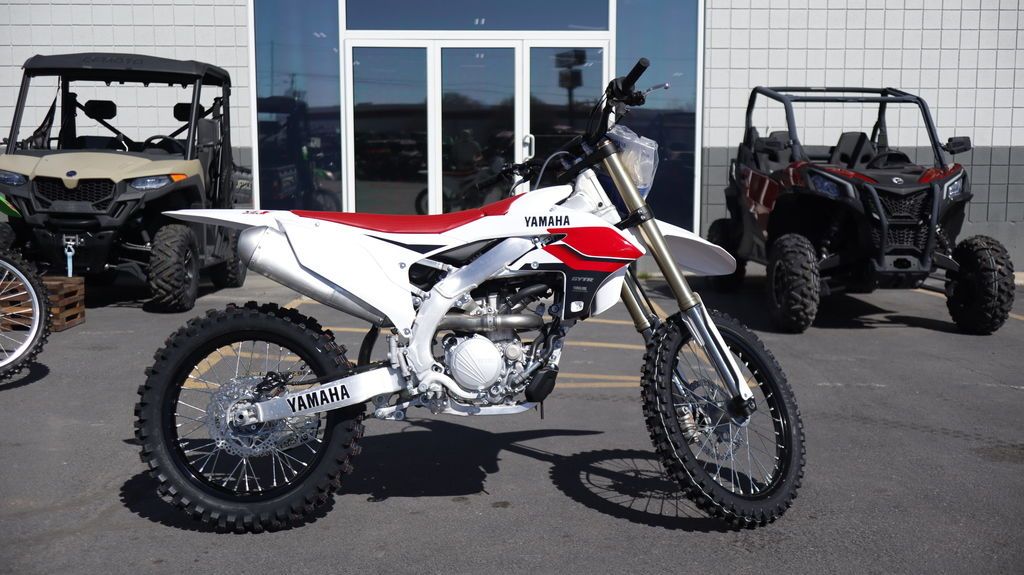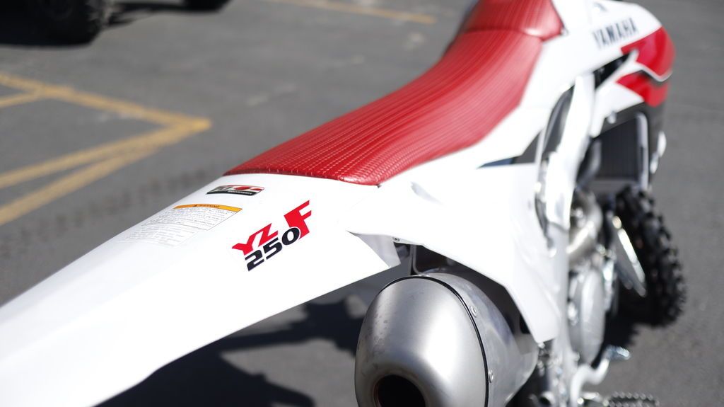 2026 Yamaha YZ250F 70th Anniversary Edition RIDE LIKE AN ICON The performance of a multi-time Supercross & Motocross champ wrapped in 70th Anniversary Edition style. Your iconic moto weapon of choice awaits. Features may include: ENGINE A forged piston features a bridge-box design for maximized strength with minimal weight. The YZ250F features a large-diameter 15-plate clutch to withstand the high demands of motocross racing. Handlebar-mounted switchbox allows on-the-fly selection between two preloaded engine maps with the push of a button. New for 2026, an industry-first ECU lock function helps prevent theft and unauthorized engine start-up. An updated Launch Control System controlled through the Power Tuner App optimizes launches when the gate drops. A three-level Traction Control System selectable within the Yamaha Power Tuner App maintains ideal rear wheel traction. CHASSIS/SUSPENSION An advanced aluminum bilateral beam frame is tuned to provide the perfect balance of stability and cornering performance. Fully adjustable Speed Sensitive KYB® fork delivers exceptional balance between handling and bump absorption. A linkage-type rear suspension with KYB® shock is tuned to provide less pitch and improved stability. A large 270mm front and 240mm rear disc combine with Nissin calipers to provide exceptional stopping power and control. The YZ250F's aggressive body design is slim, flat and eases rider movement for improved control. Tapered aluminum handlebars are secured to four-position adjustable handlebar mounts. ADDITIONAL FEATURES Iconic white and red 70th Anniversary Edition livery combines with the YZ250F's aggressive bodywork for a stunning look. Sleek air cleaner cover provides tool-free access to the air filter for simplified servicing.