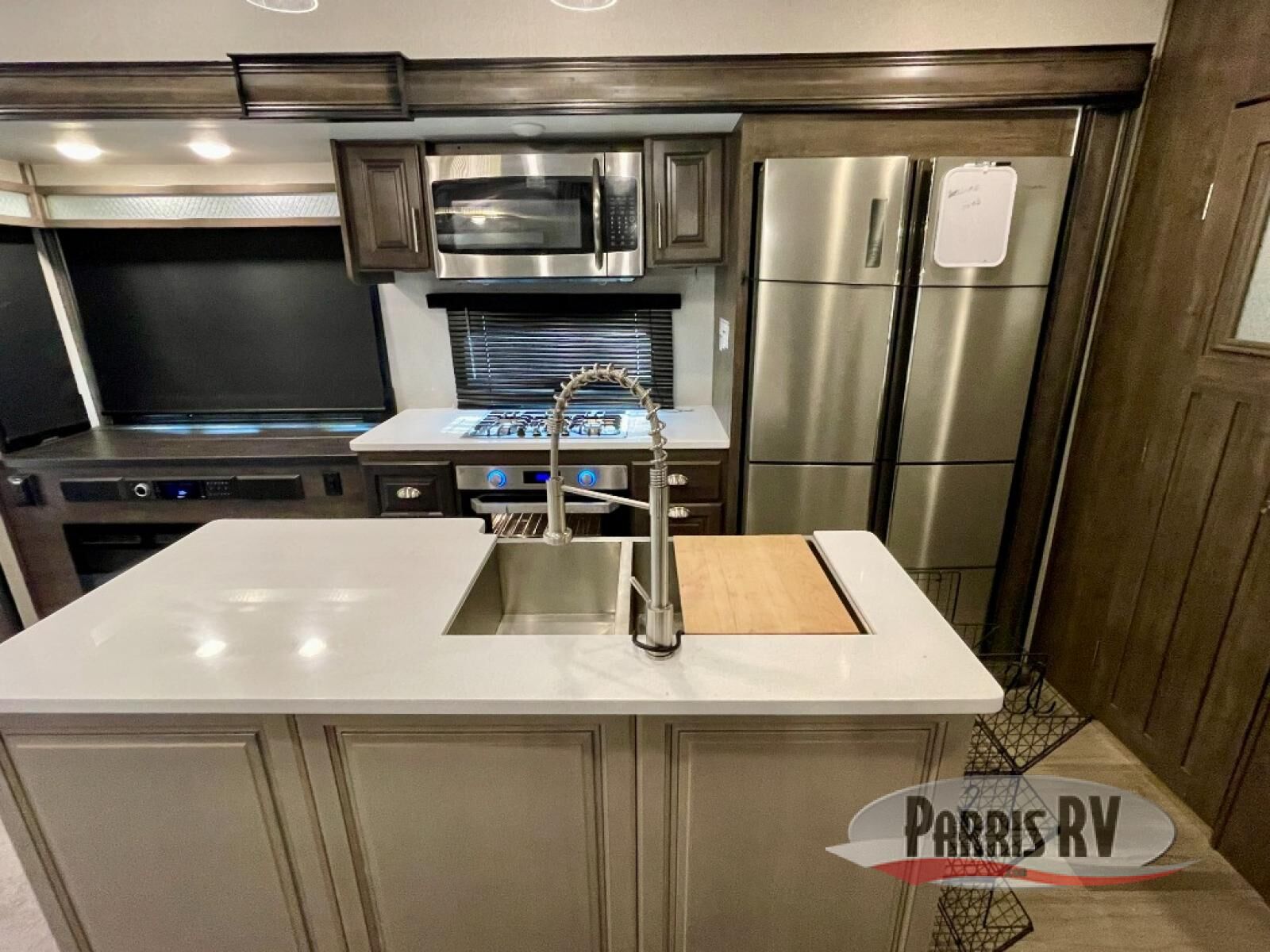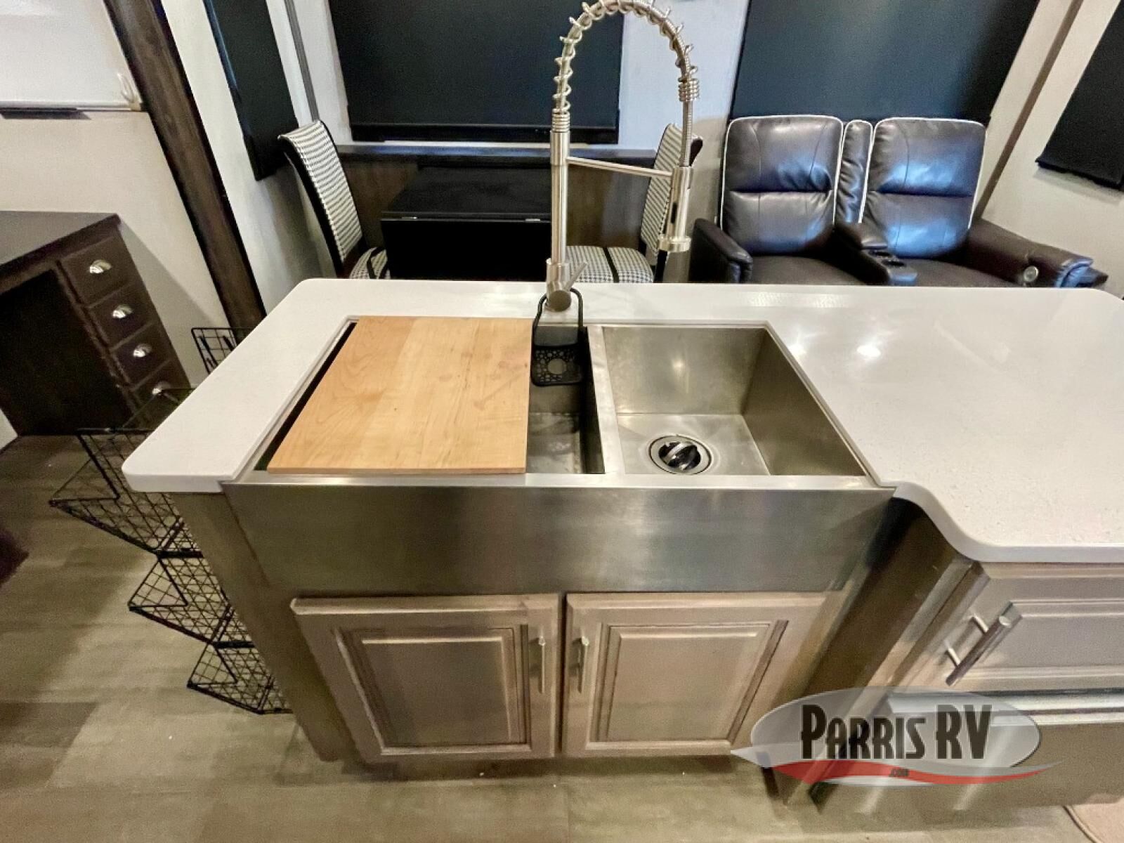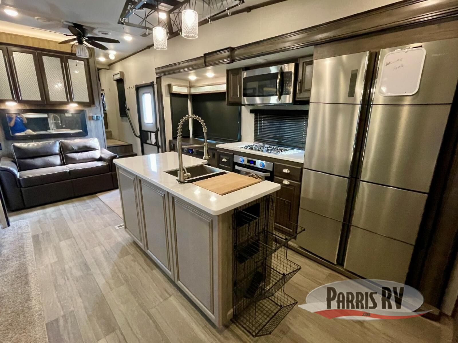 If you need to get work done while camping at your favorite place, then you need this Cardinal Luxury fifth wheel by Forest River! It features a rear desk for you to work at with a walk-in pantry conveniently located right next to you so that you can stay fueled while you work. You will also love the extra counter and storage space from the kitchen island. If mother nature rains on your parade, then you can head indoors and relax comfortably on either the theater seating or the tri-fold sofa while you enjoy the cozy fireplace at the entertainment center!