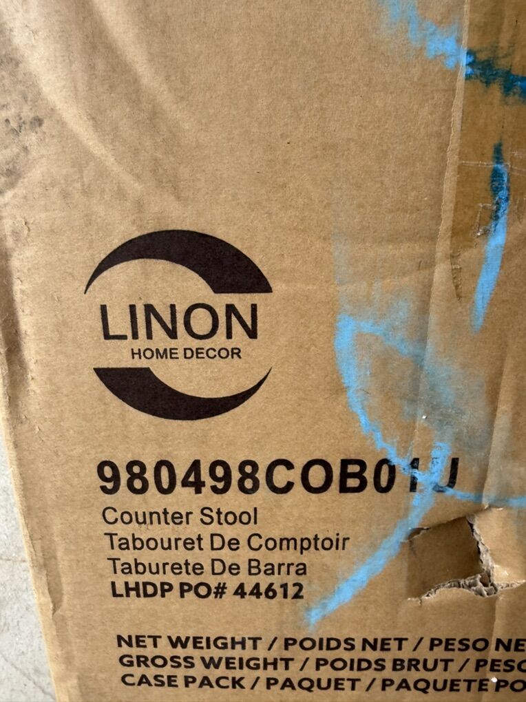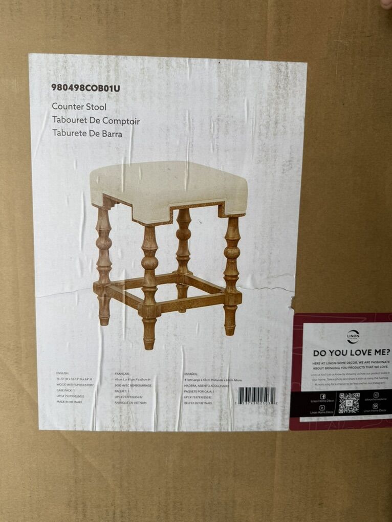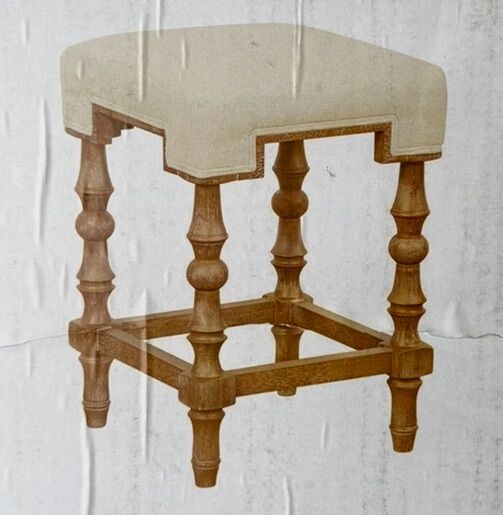 Discover the Shelly Backless Counter Stool, blending rustic charm with modern comfort. Featuring a geometric seat and decorative washed wood legs in rustic brown, this 24-inch high stool with plush, striped upholstery offers style and support for any counter space. Perfect for enhancing your kitchen or bar area.