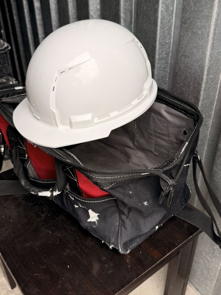 I HAVE A HUSKY TOOL BAG AND MILWAUKEE HARD HAT AVAILABLE FOR SALE. THE TOOL BAG IS USED BUT STILL IN GREAT CONDITION, THE HARD HAT IS IN GREAT CONDITION ALSO AND THE MILWAUKEE HELMET IS VERSATILE IT CAN BE USED TO PUT HEAD LAMP GEAR OR OTHER CONSTRUCTION ACCESSORIES ON IT.