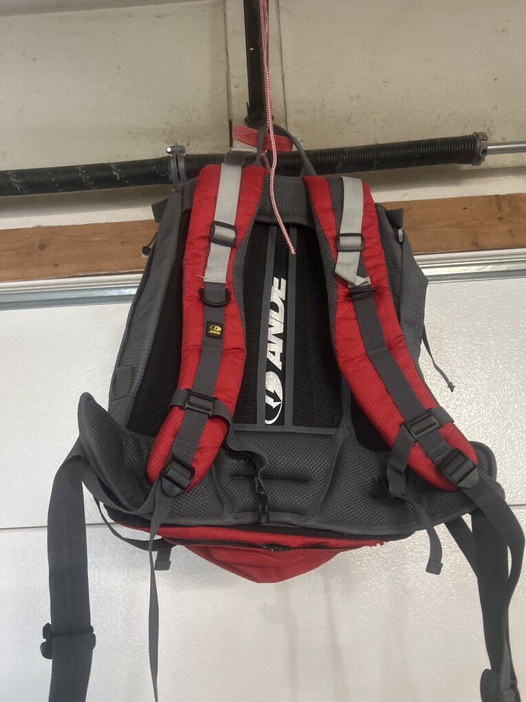 VenmoUsed, fair condition Ande Turcana 35 liter backpack. Has main pocket with top and side zipper access, floating top lid pocket, side pockets, back pocket, and a bottom pocket for a rain cover (not included) Very breathable back panel and well-padded waist belt. Lots of adjustability and lashing points for hiking poles, mountaineering axe, etc. A few small wear holes, but nothing that compromises the pack. Ande is an Italian brand not normally seen here. Just cleaning out my pack quiver a bit.