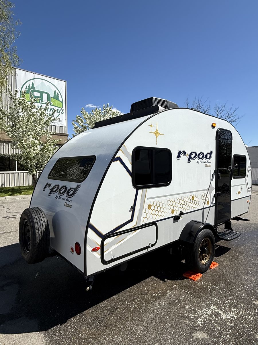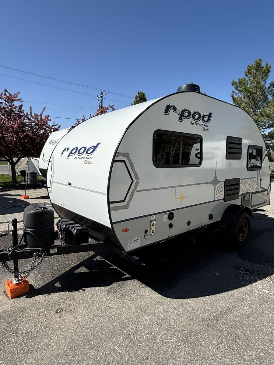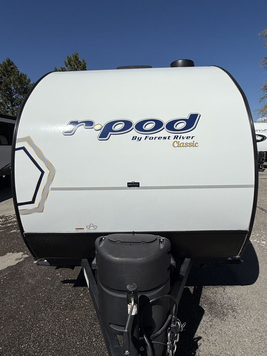 • Length: approx. 19 ft. • UVW: 2,500 lbs. • Fresh Water Capacity: ~30 gal • Gray/Black Tanks: ~30 gal each • Sleeping Capacity: 3 Upgrading from tent camping? Downsizing for easier travel? The R-Pod 171C offers the perfect blend of options!