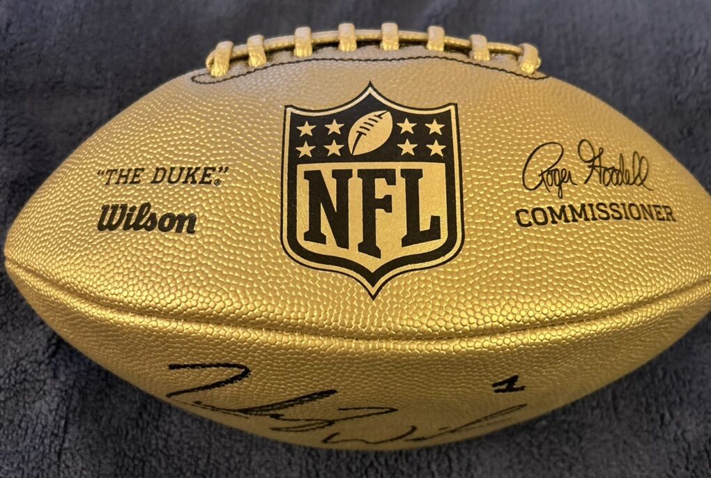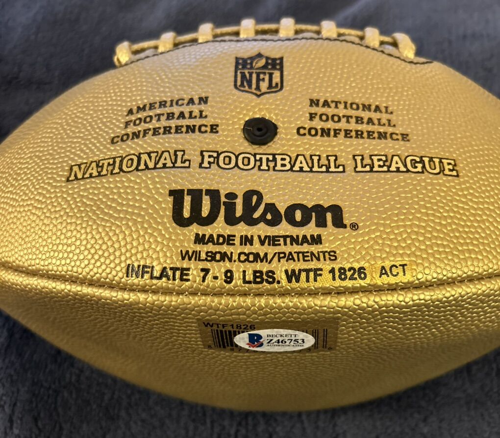 ApplePayZach Wilson Signed BYU Brigham Young Custom GOLD NFL LEATHER Football Card Autograph COA with (2) Autographed Football Cards.