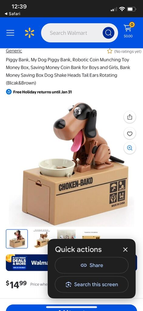 VenmoPiggy Bank, My Dog Piggy Bank, Robotic Coin Munching Toy Money Box, Saving Money Coin Bank for Boys and Girls, Bank Money Saving Box Dog Shake Heads Tail Ears Rotating (Blcak&Brown)