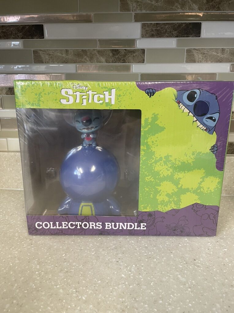 Disney Stitch Collectors Bundle, likely containing collectible figures or items. • The bundle includes a main display figure and potentially other items or blind packs. • The figures are typically highly detailed and designed for play or display. • Various Stitch collectibles exist, including figures in different poses and themes. • The product is officially licensed Disney merchandise.