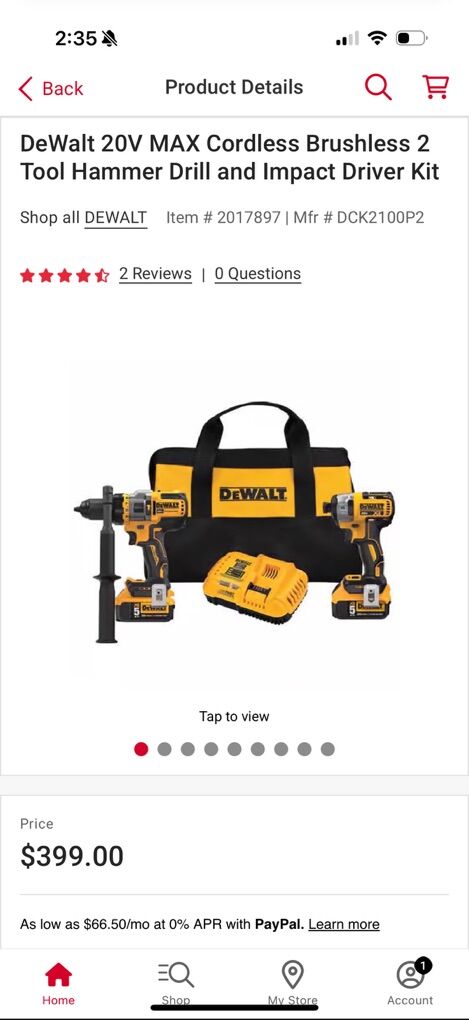 ZelleBrand new, never been opened. Dewalt 20v combo with the XR impact Driver with the 3 speed to control the speed and power, flexvolt advantage hammer drill with handle, 2x 5ah batteries and a rapid charger. Hammer drill model dcd999, impact driver model dcf887, batteries are dcb205, charger is dcb118 and bag to cover everything. Model DCK2100P2 Ace sells for $399