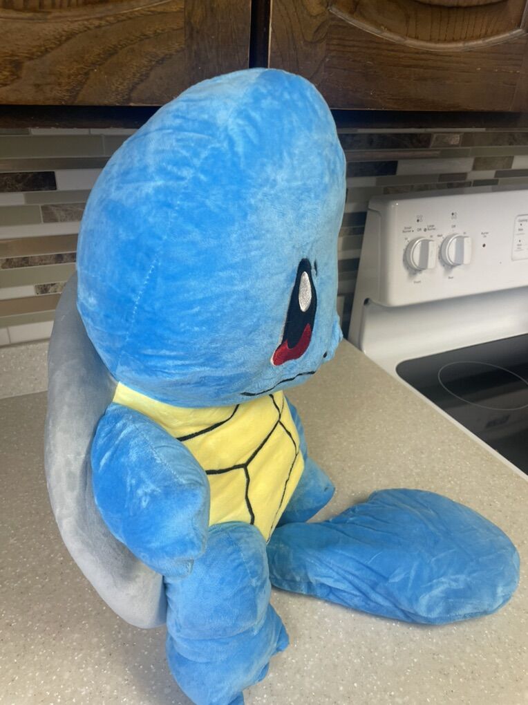 VenmoThis is a large, officially licensed Pokémon Squirtle plush stuffed animal. • It is a soft, blue turtle character from the Pokémon franchise. • The plush is available in various sizes, including approximately 12 inches, 16 inches, and 24 inches. • It is made of super soft material, perfect for cuddling or displaying as a collectible. • The toy is inspired by the Pokémon anime and video games.