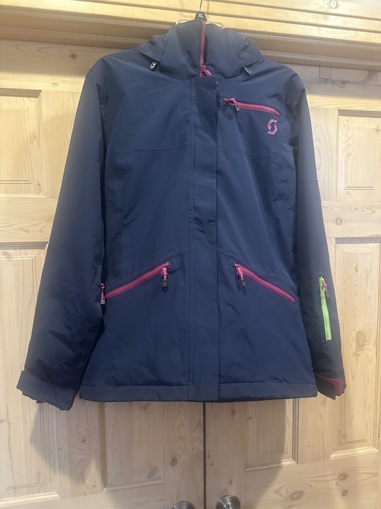 Scott women’s size 8-10 navy snowboard jacket with fuchsia trim. This is in excellent condition, see photos for details. It has underarm vent, zip pockets, a powder skirt, and detachable hood. I take cash or Venmo, but cash is preferred. Text is best. 801-201-4446. Check out my other ads for additional sizes and styles.