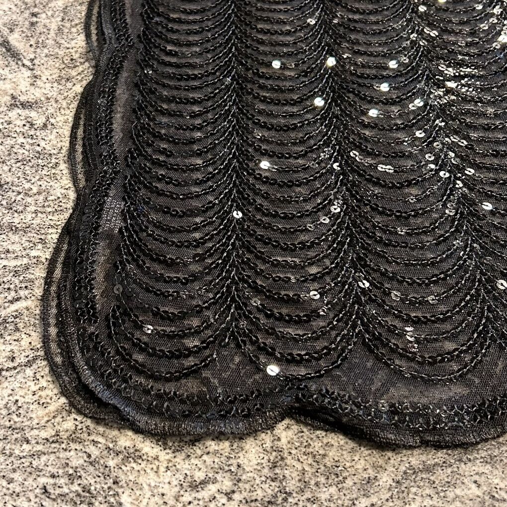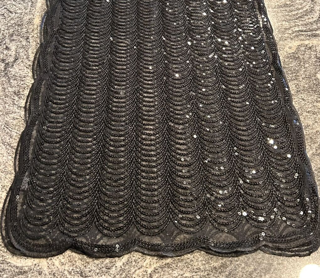 Cejon scalloped black sequined wrap in excellent condition. It’s never been worn and there’s no missing sequins. Measures 74” long by 20 1/2 “ wide. Text preferred or leave a voicemail and I’ll get back to you. Check out my other listings open to offers.