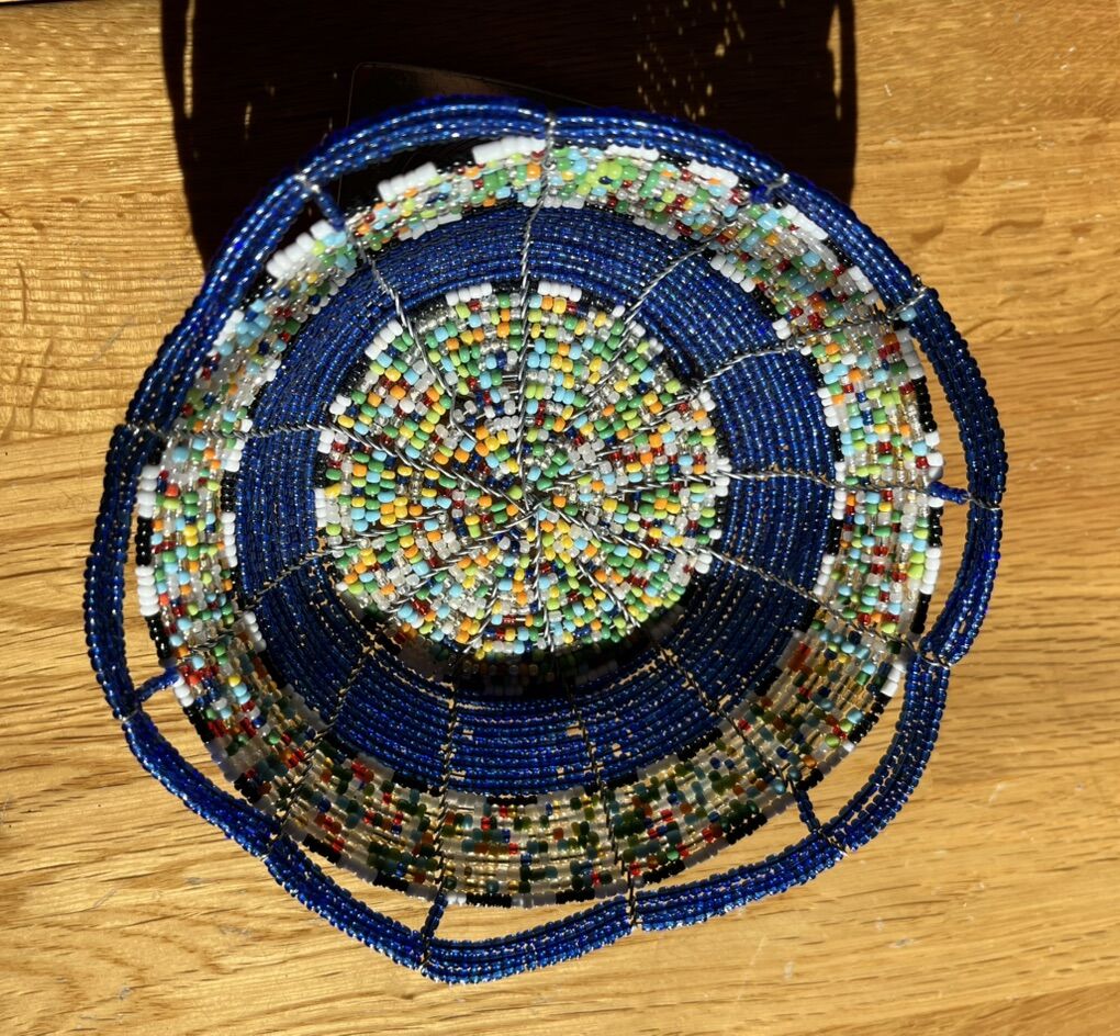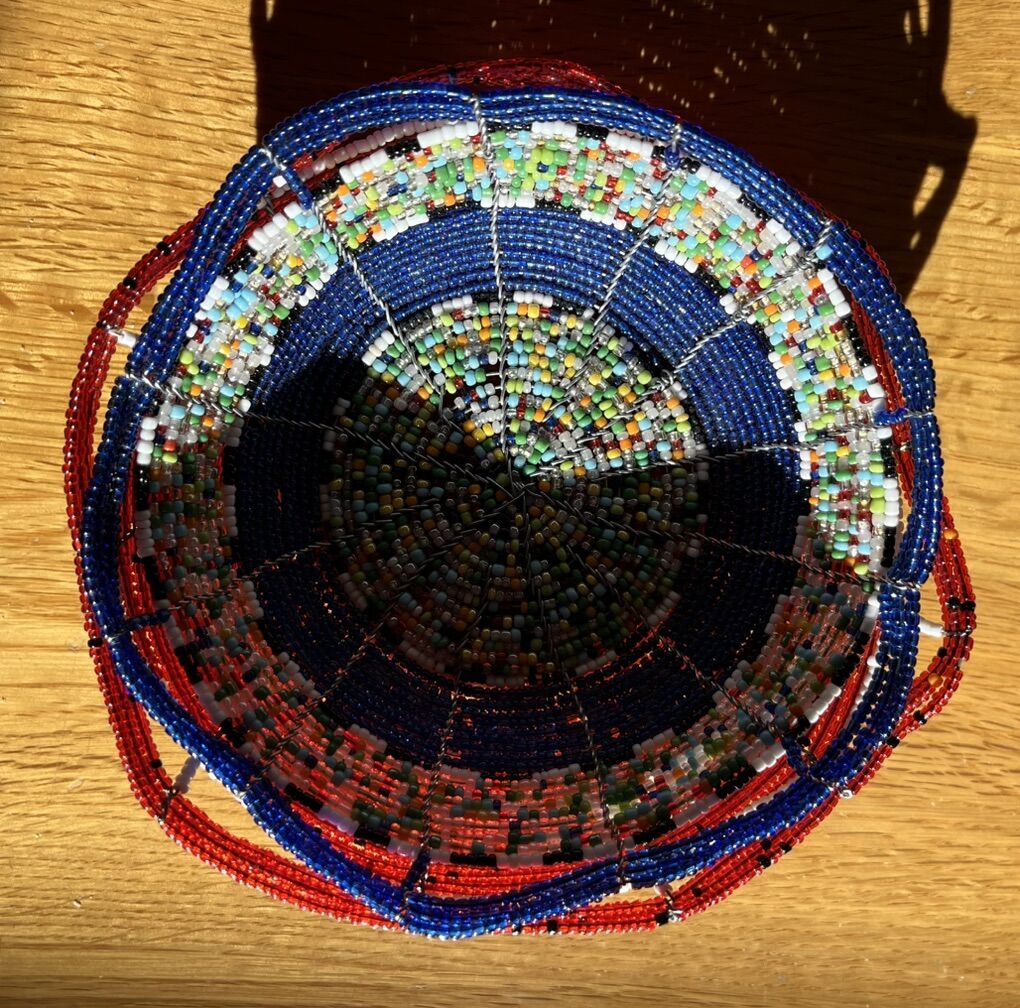 VenmoNever used red-blue-multicolor beaded bowls/home decor. They are 5”-6” wide x 2” deep. $5 each or $8 for both.