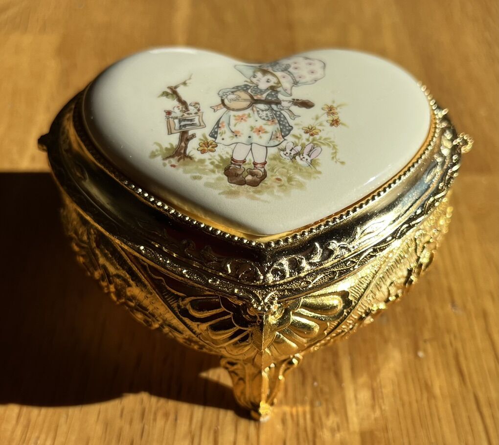VenmoNever used heart shaped porcelain-metal trinket/jewelry box. Measures: 3” x 2,5” x 2”. $15