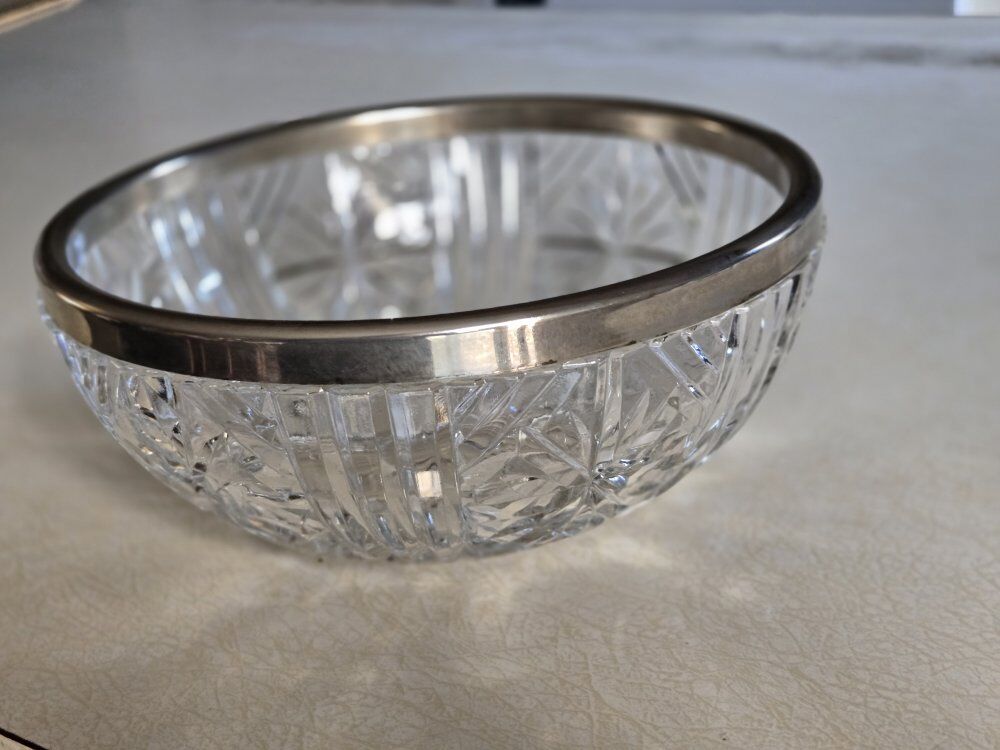 ZelleVintage Pressed Glass Serving Bowl with Silver Rim. $20 OBO- Cash, Venmo, or Zelle.