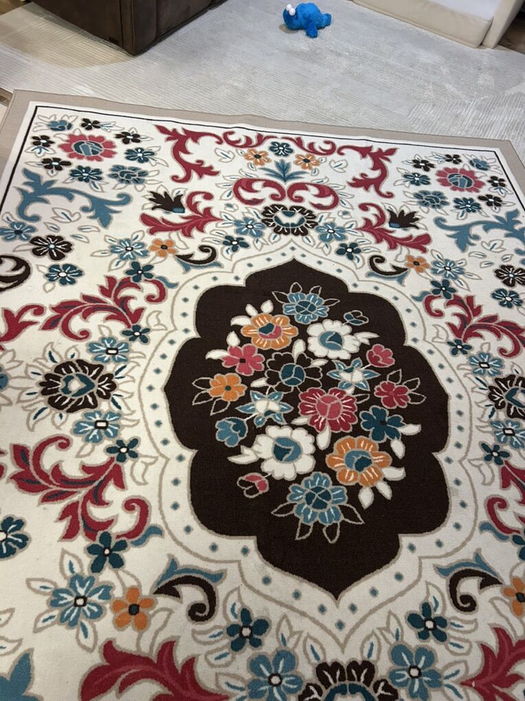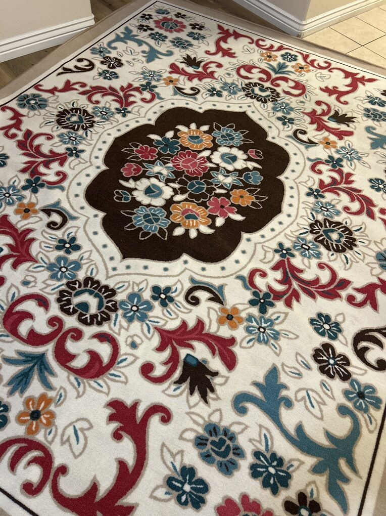 VenmoAntep Rugs Alfombras Non-Skid (Non-Slip) Rubber Backing Modern Floral Low Profile Pile Indoor Area Rugs (Beige 7'10 x 10')