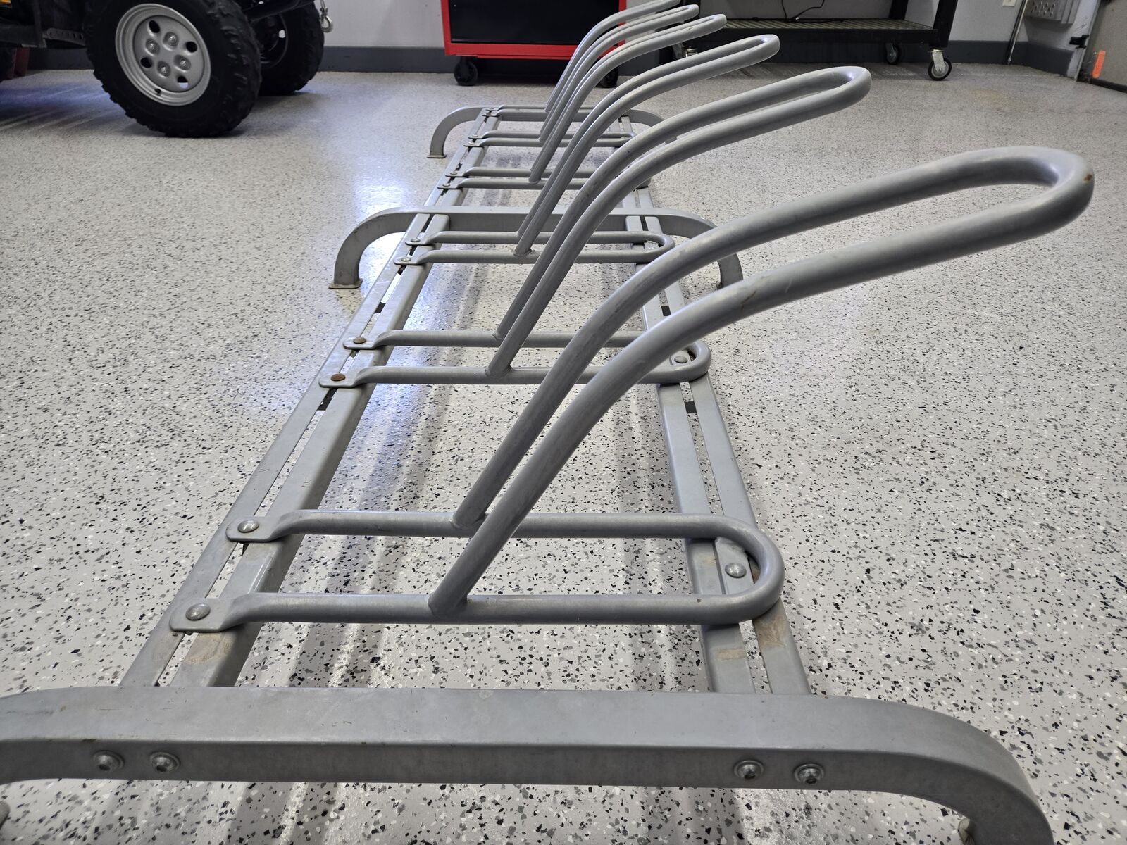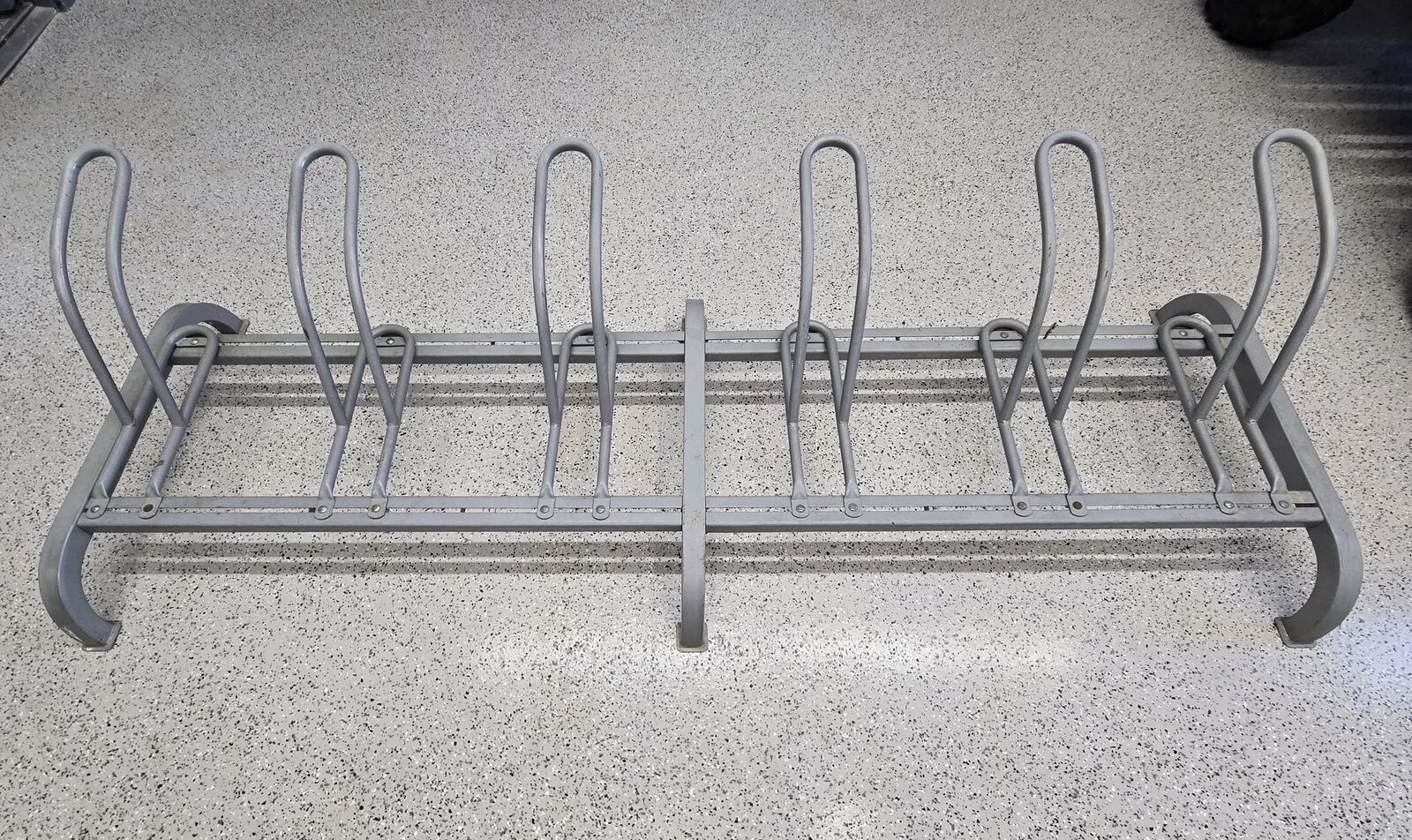 VenmoStay organized storing your bikes this winter! This solid, heavy-duty metal bike rack is in great shape. It is a freestanding rack that securely holds up to 6 bikes, perfect for garages, shops, schools, trailheads, apartments, or anyone wanting organized bike storage. Works well indoors or outdoors.